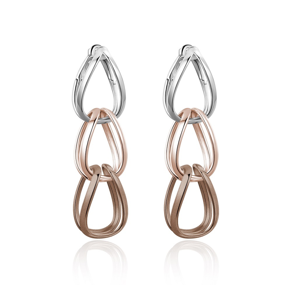 А если хочется чего-то авангардного, почти скульптурного — Pianegonda. У них асимметрия не просто в длине, а в концепции. В одном ухе серьга, напоминающая обломок колонны, в другом — тонкая линия с изгибом, как будто металл текёт по коже. Стильно, смело, абсолютно уникально.