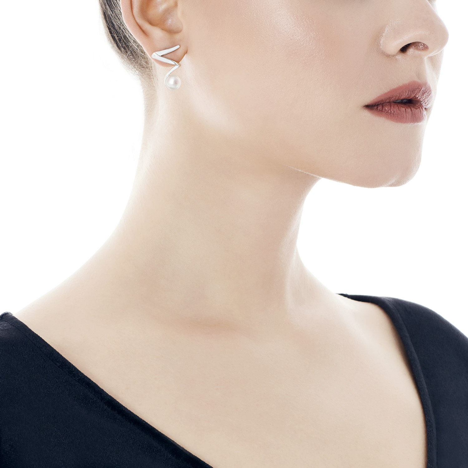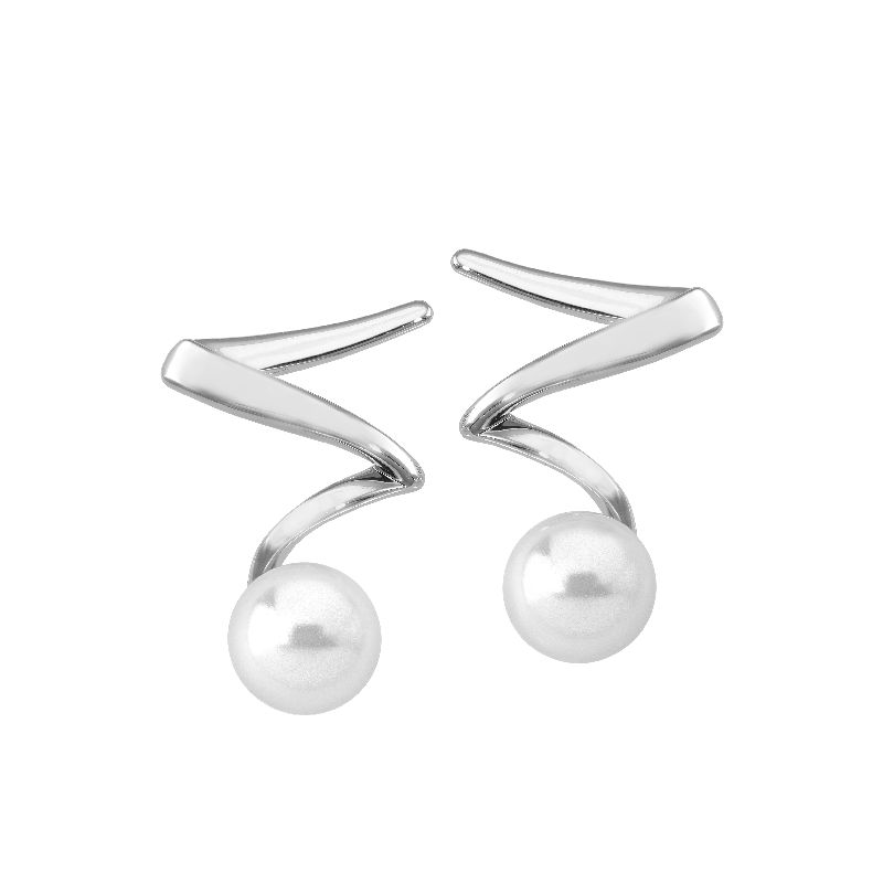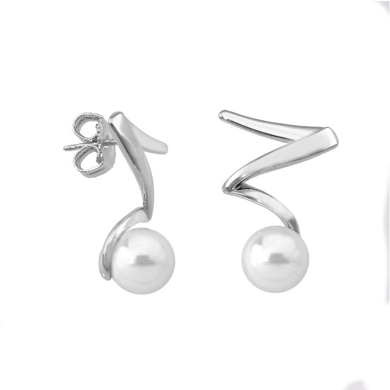 Серьги, серебро 925 пробы, гальваническое покрытие родием, белый жемчуг диаметром 7 мм