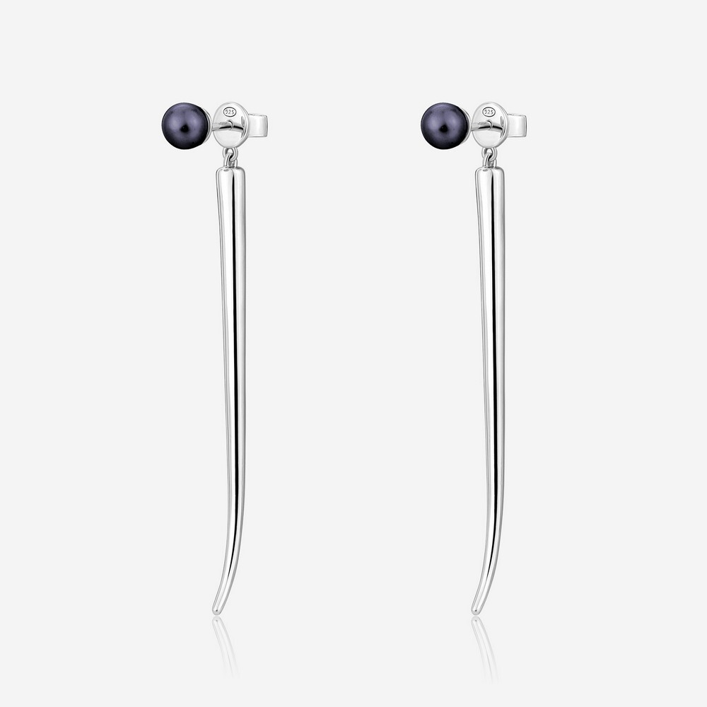 Серьги Pianegonda из коллекции Cuspis выполнены из серебра 925 пробы с натуральным жемчугом размером 6 мм. Длина 7 см. Коллекция вдохновлена шипами, символом силы и защиты, а черный жемчуг добавляет нотку теплоты и изысканности.