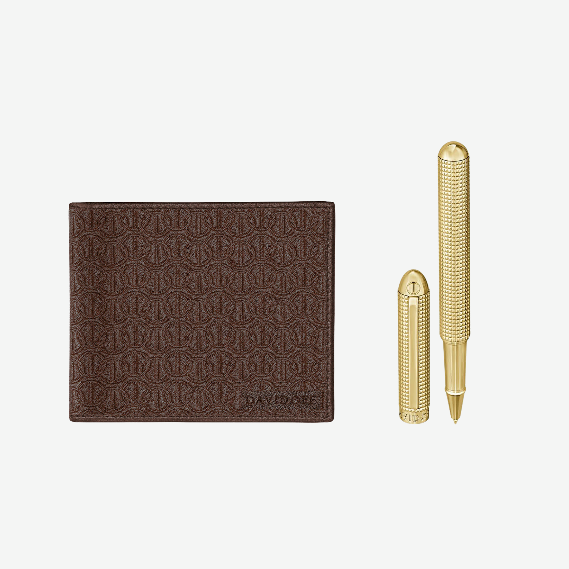Комплект от швейцарского бренда Davidoff из коллекции Zino состоит из бумажника и ручки-роллера. Бумажник: материал — кожа теленка, цвет — коричневый, размер — 11, 5*9, 5*1 см. 6 КК + 2 отделения. Ручка-роллер: материал — латунь, покрытие металла — золото 750 пробы. Davidoff является 100% семейной компанией, которая была основана в 1980 году. За многие годы небольшая швейцарская компания выросла в большой международный бренд. Davidoff является брендом доступной роскоши для современных мужчин. Уникальностью и удовольствием от обладания изделиями Davidoff могут наслаждаться мужчины по всему миру. Бренд является эталоном для тех, кто выбирает наполненную жизнь, окружая себя красивыми и стильными вещами.