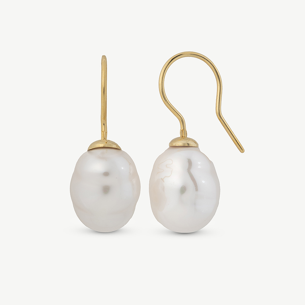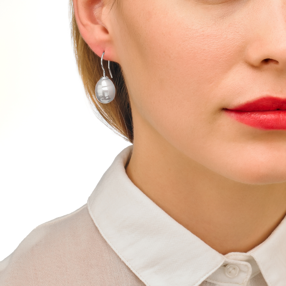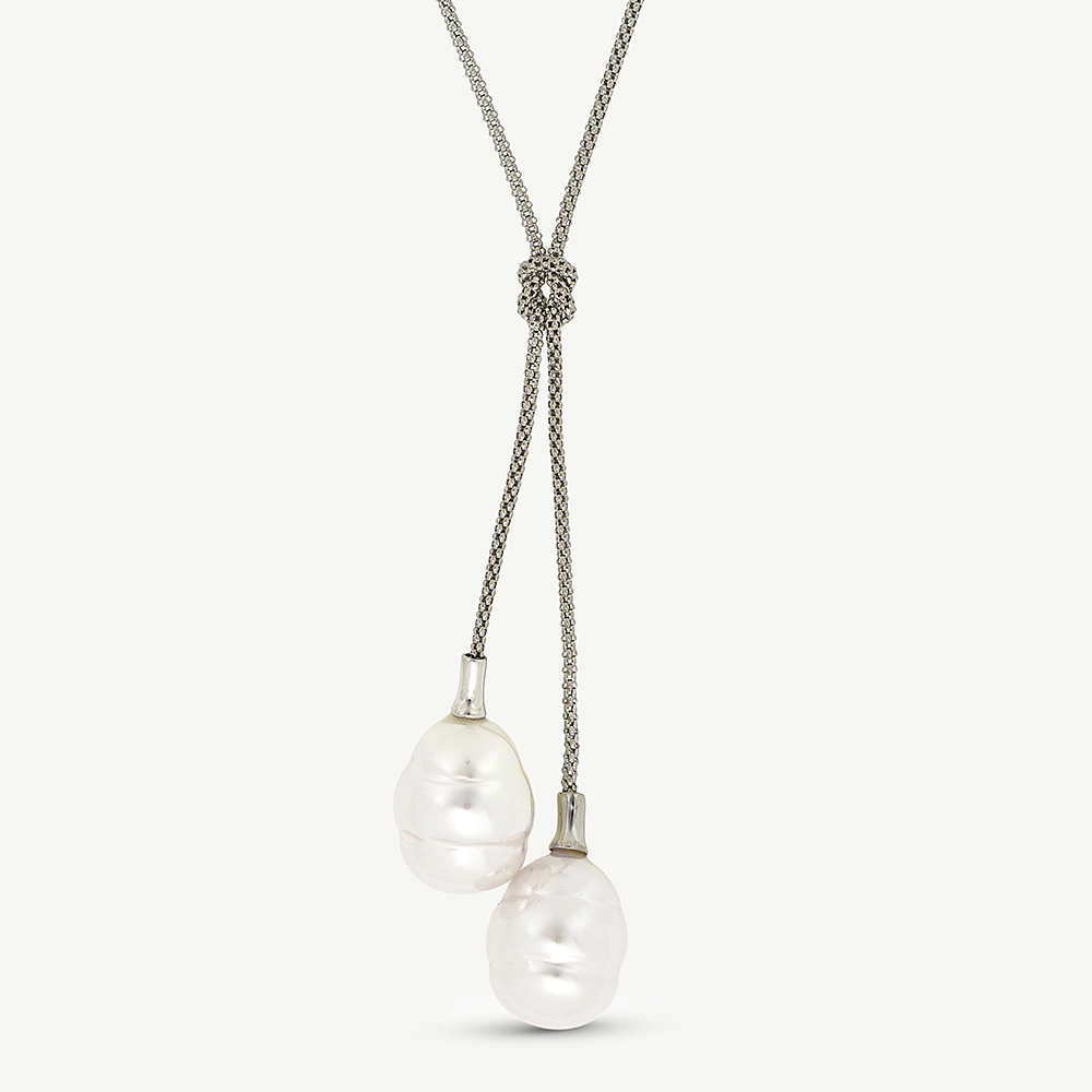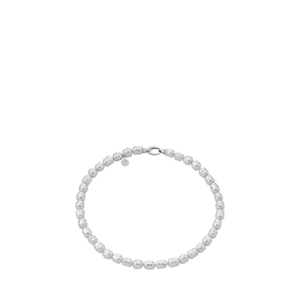 Браслет, серебро 925 пробы с гальваническим покрытием родием со вставками из органического жемчуга формы барокко белого цвета диаметром 8 мм, длина 19 см.