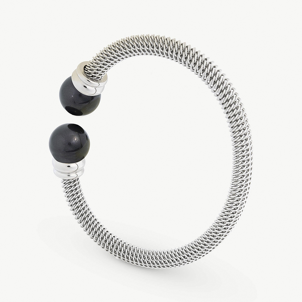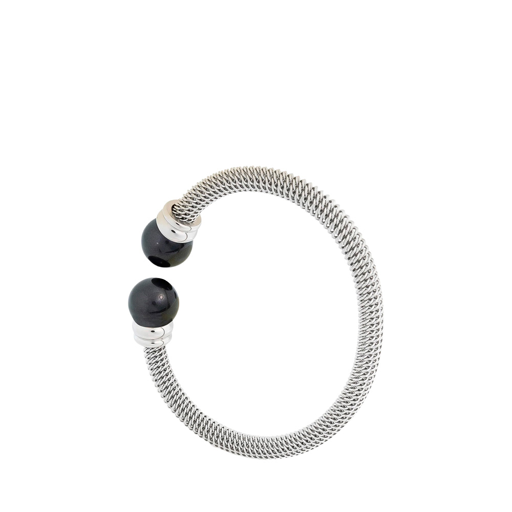 Браслет Majorica из коллекции TENDER выполнен из высококачественной стали. Нежные вставки из органического черного жемчуга диаметром 12мм. дополняют твердость металла. Гарантия 2 года на украшение в части металла, гарантия 10 лет на жемчуг органический в части отслоения и потемнения. Произведено в Испании. Доставка по России.