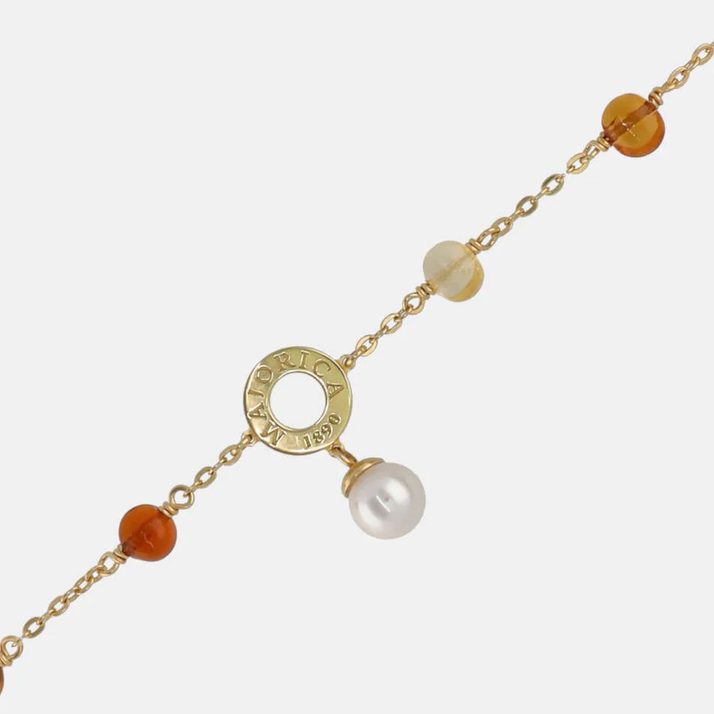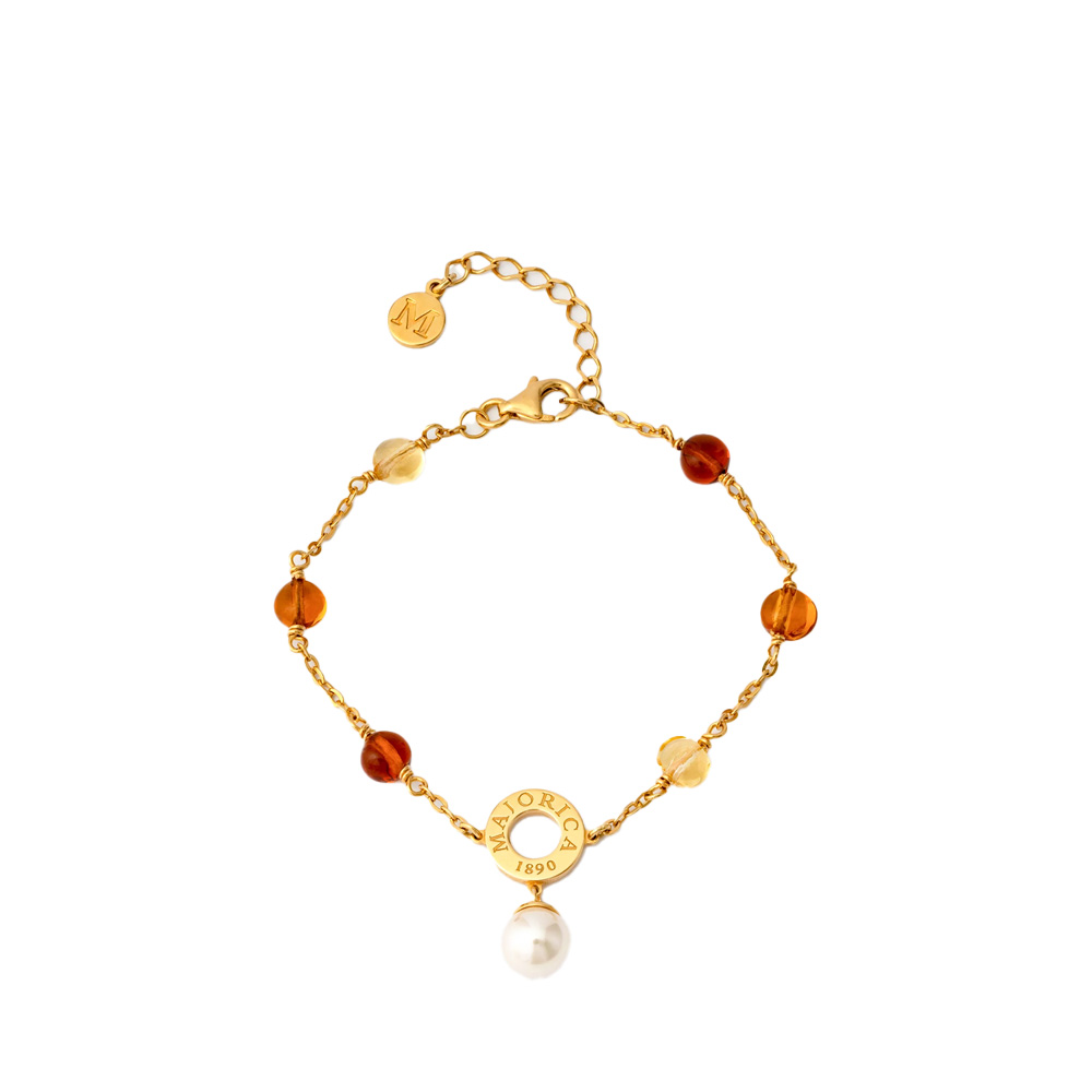 Браслет с регулируемой цепочкой 16,5/19,5 см, серебро 925 пробы, покрытие золотом, жемчуг 7 мм, муранское стекло