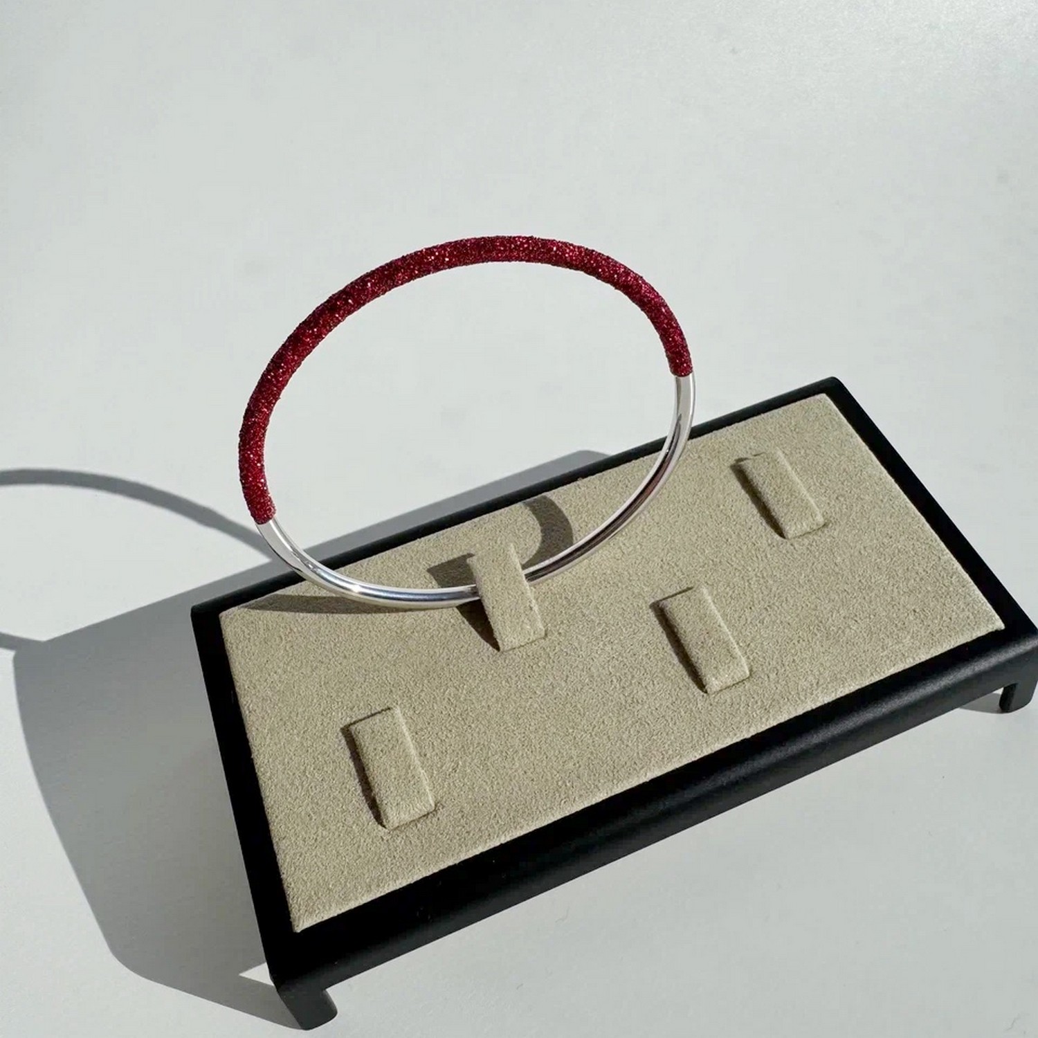 Каркасный браслет Pesavento из коллекции Polvere di Sogni (Звездная пыль), выполнен из серебра 925 пробы, покрыт родием и эмалью красного цвета.
