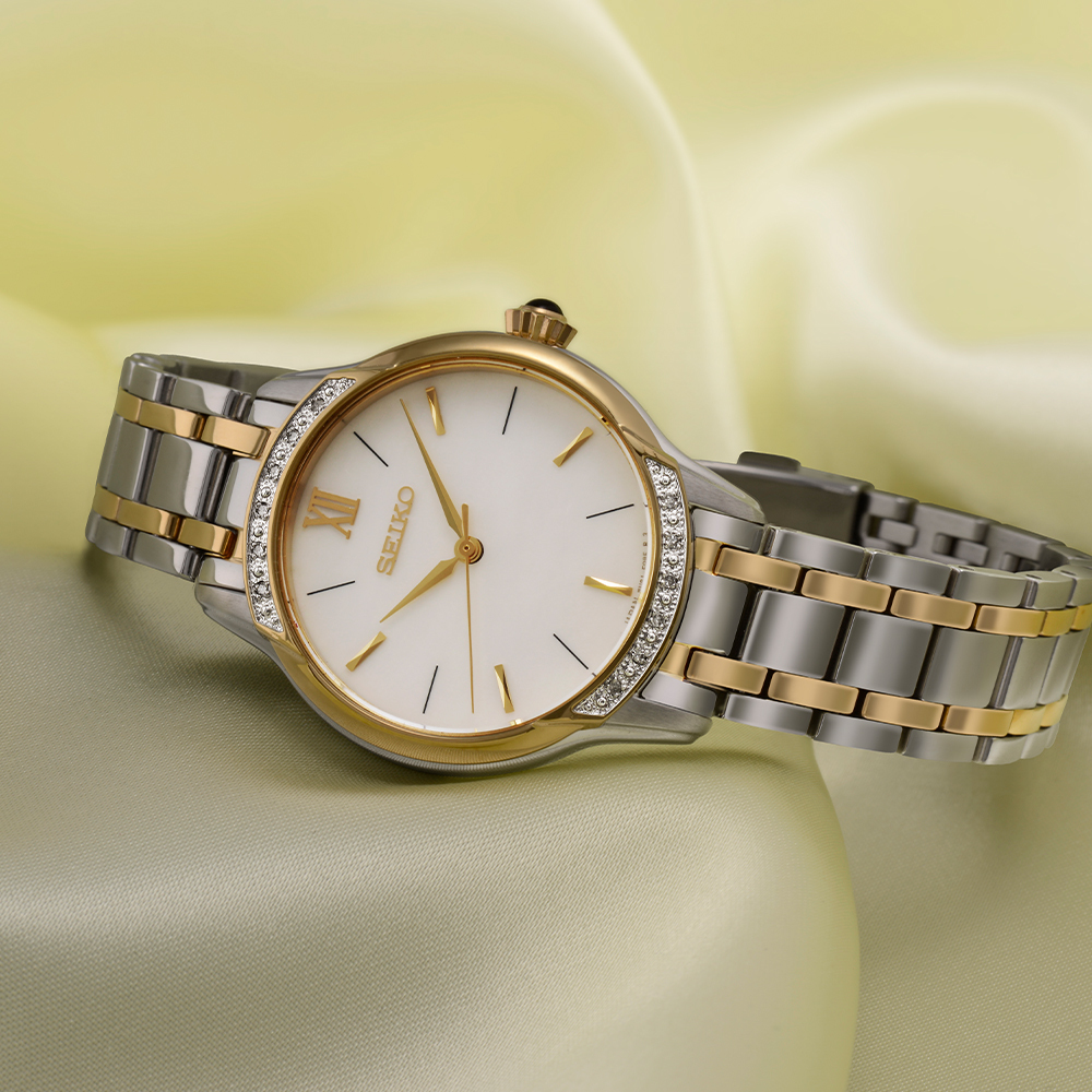 Seiko SRZ544P1 — выбор женщин, ценящих качество во всём. Высокоточный калибр 7N01обеспечивает прецизионную точность, компактный корпус 29.5 мм создаёт изящный силуэт, а премиальная отделка соответствует уровню дорогих брендов.