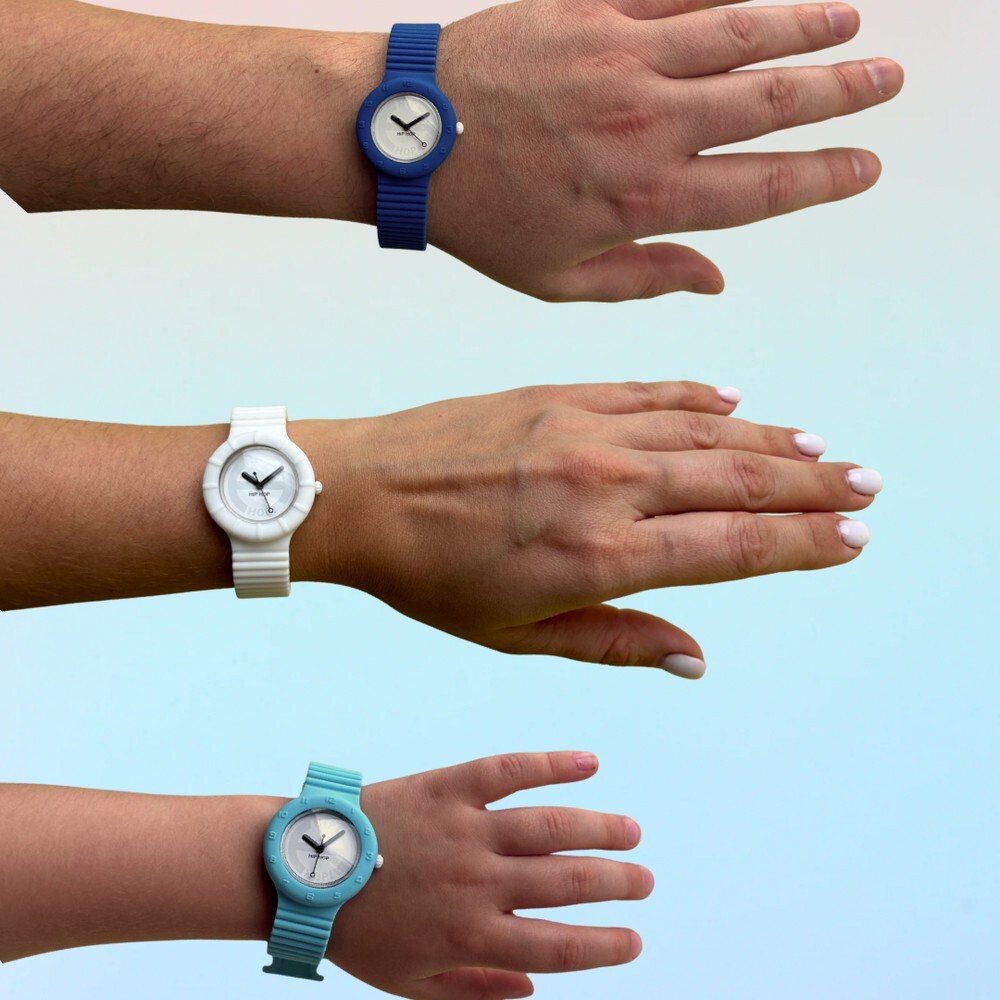 Наручные часы Hip-Hop HW0011, кварцевый механизм, пластиковое стекло, водостойкость 50м (5 АТМ), силиконовый ремешок, корпус вынимается из ремешка, ремешок с ароматом ванили, гарантия 2 года, сделано в Италии.