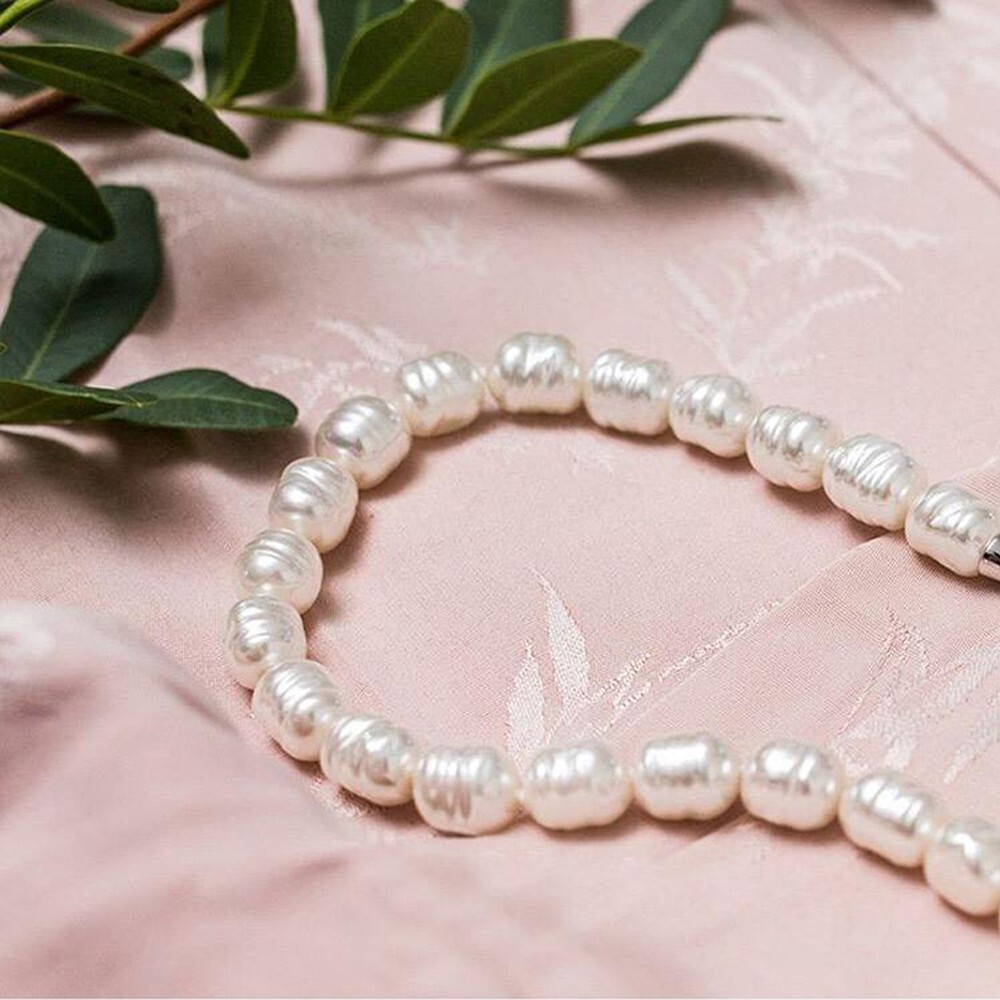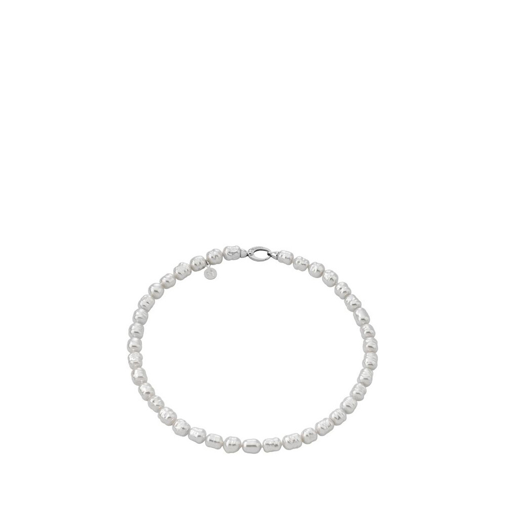 Ожерелье длиной 45 см, серебро 925 пробы, покрытие родием, жемчуг барокко белый 8 мм