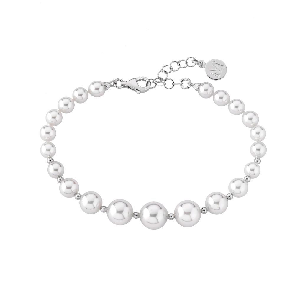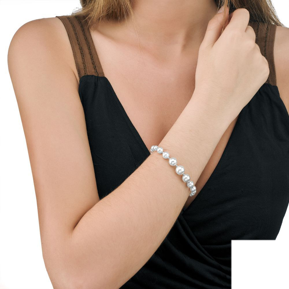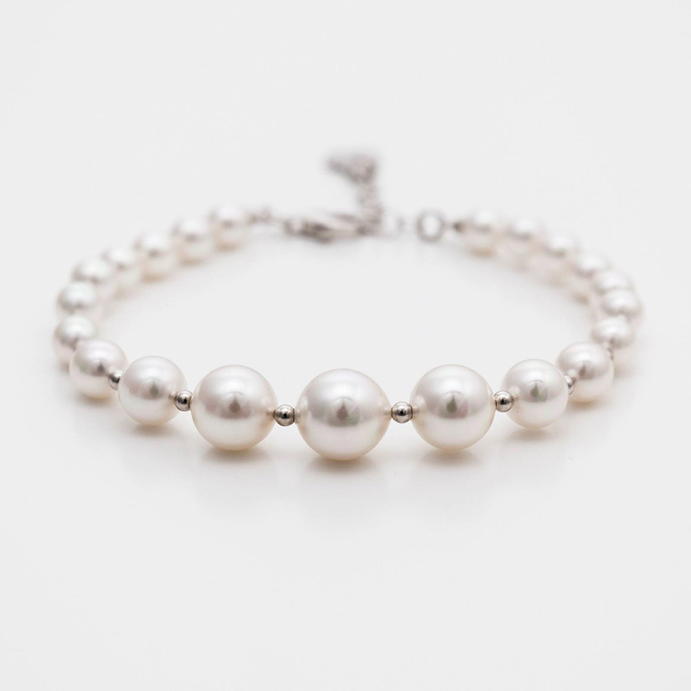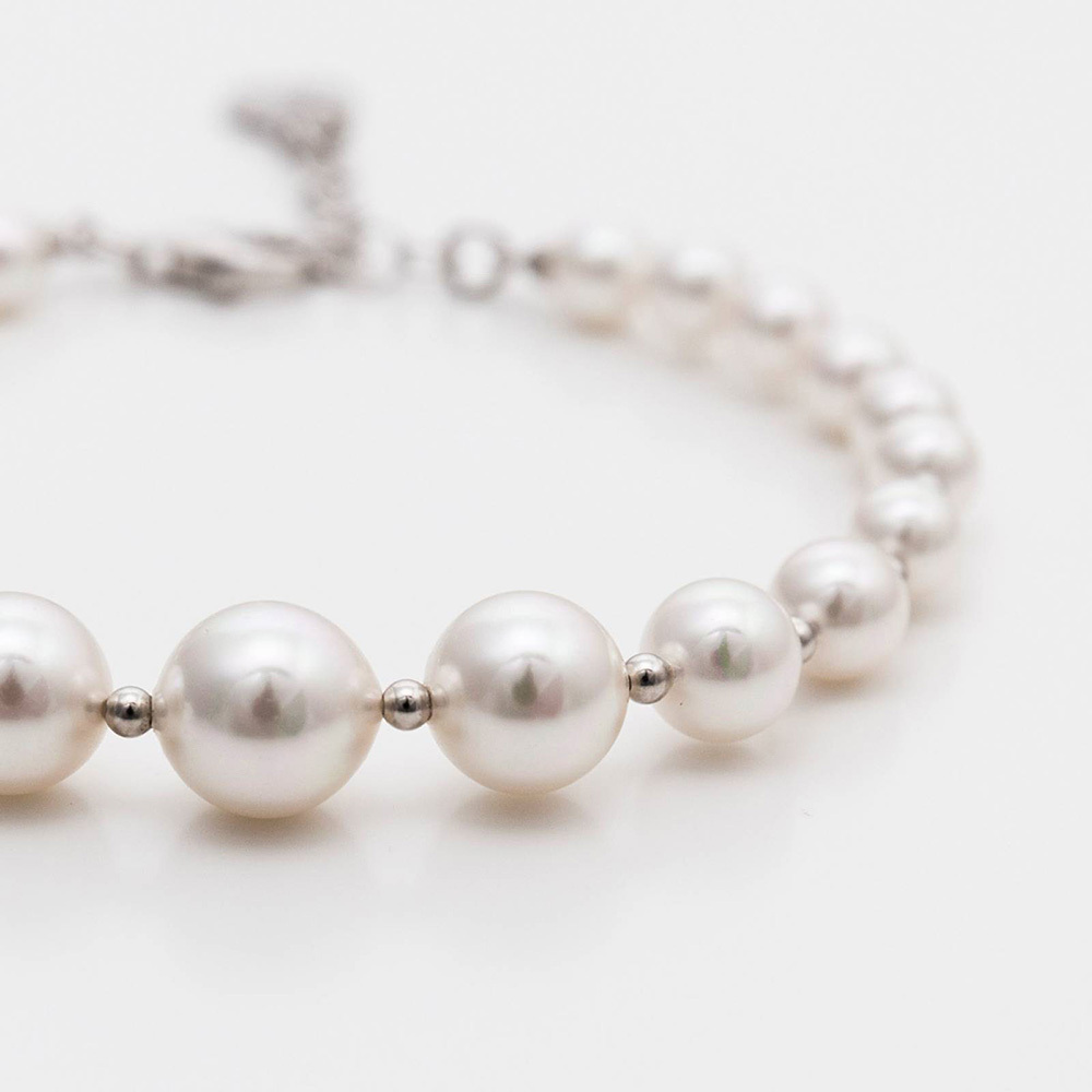 Браслет, серебро 925 пробы с гальваническим покрытием родием со вставкой из органического жемчуга круглой формы белого цвета диаметром 6/7/8/9/10 мм, длина 19-22 см