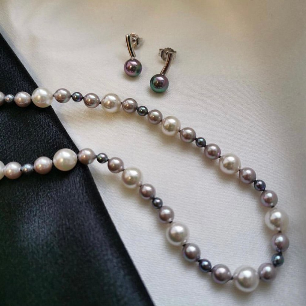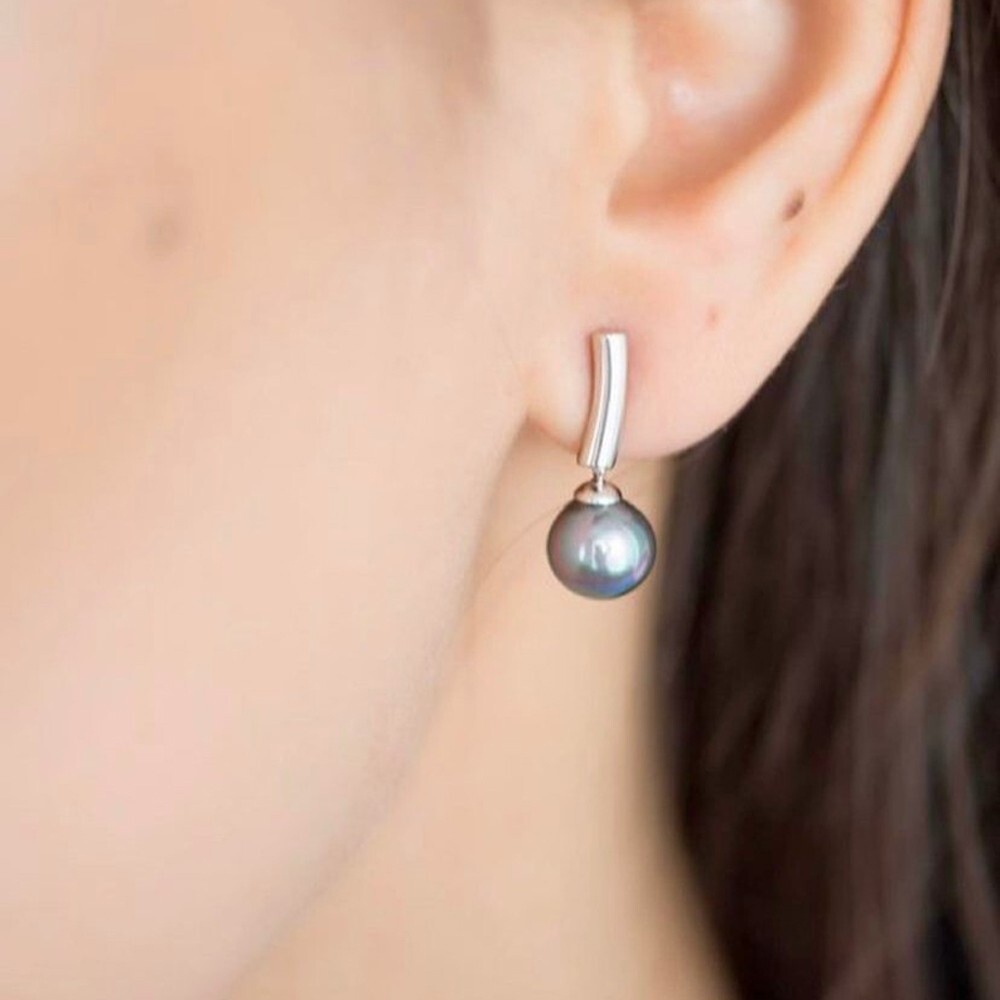 Серьги, серебро 925 пробы с гальваническим покрытием родием со вставками из жемчуга круглой формы серого цвета диаметром 8 мм.