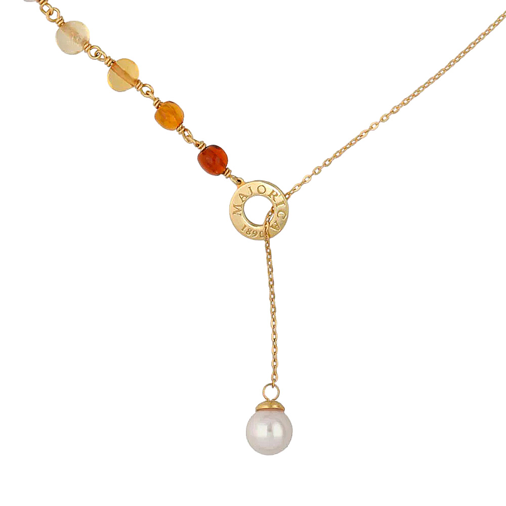 Колье Majorica 16687.01.1.N42.530.1, серебро 925, Гальваническое покрытие золотом, вставка органический жемчуг, муранское стекло