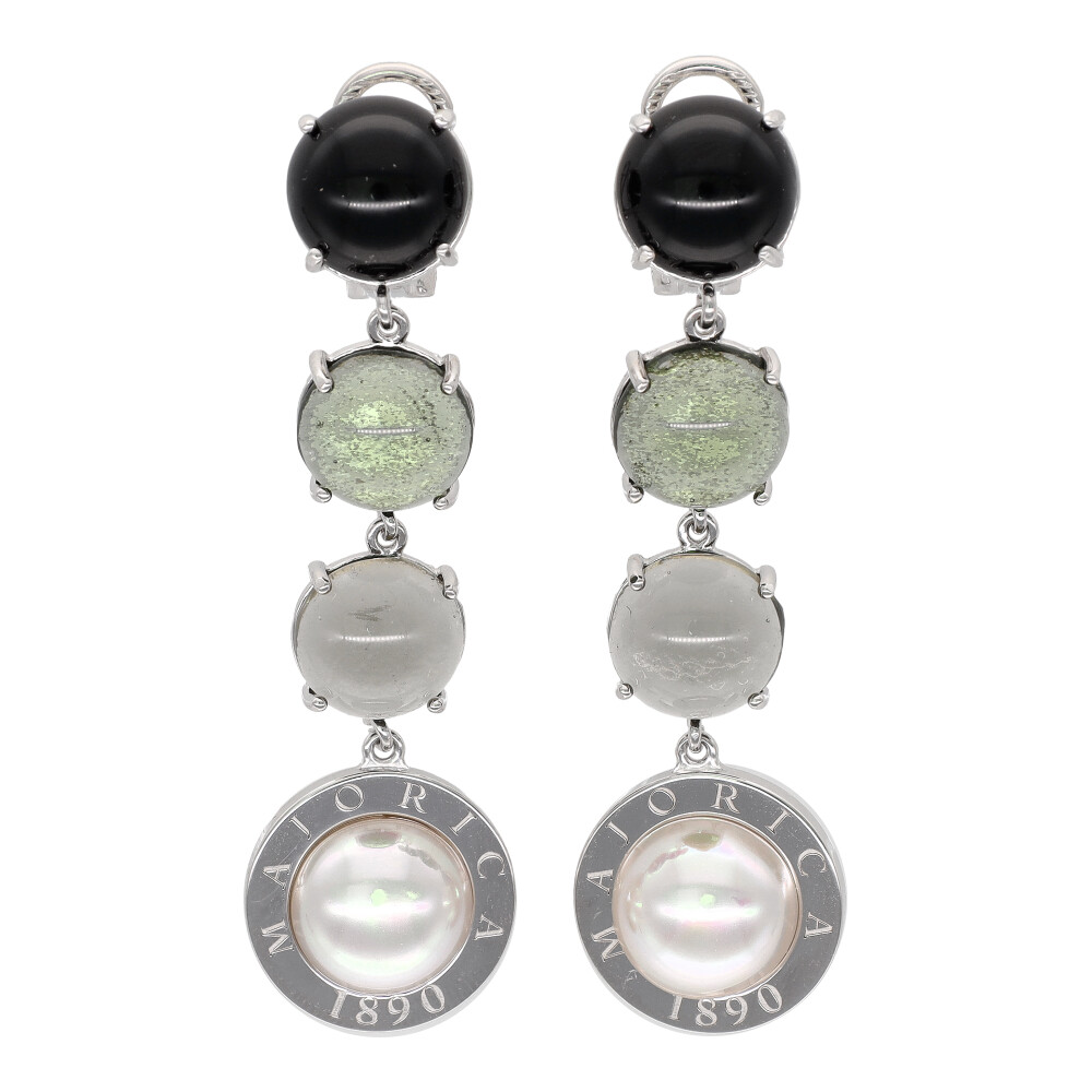 Серьги длиной 6 см с итальянским замком, серебро 925 пробы, покрытие родием, жемчуг 12 мм, муранское стекло