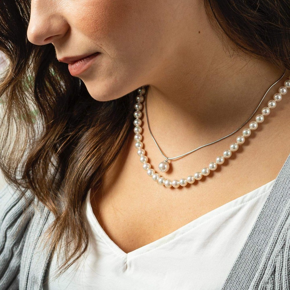 Ожерелье Majorica из коллекции BASIC, артикул 12112.01.2.023.010.1, серебро 925 пробы, гальваническое покрытие родием, вставки: жемчуг органический, п/э нить. Гарантия 2 года на украшение в части металла, гарантия 10 лет на жемчуг органический в части отслоения и потемнения. Произведено в Испании.