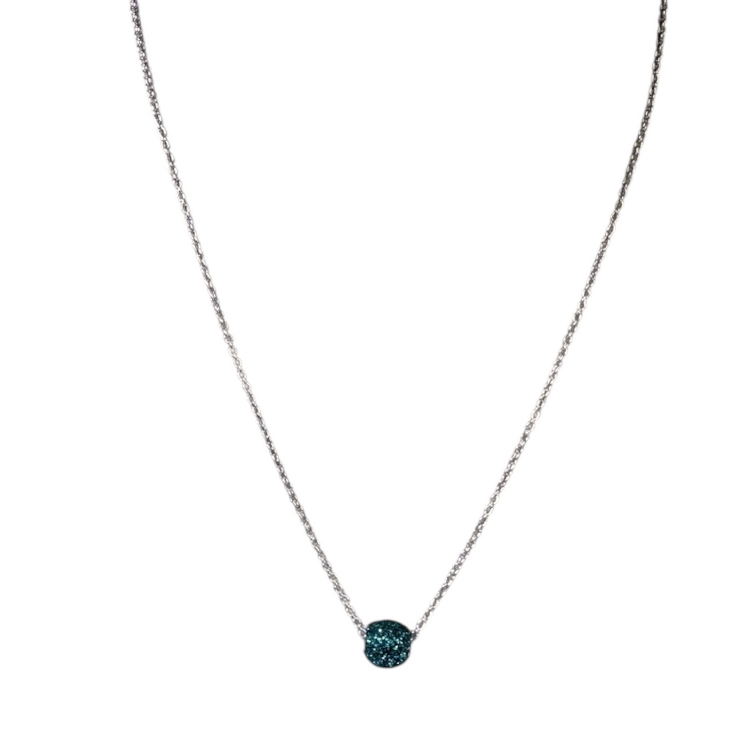 Колье из коллекции Polvere di Sogni выполнено из серебра покрытого родием и подвески в цвете Light green из эмали с микрочастицами, полученными с помощью нанотехнологий из натуральных минеральных материалов. Застежка - карабин.