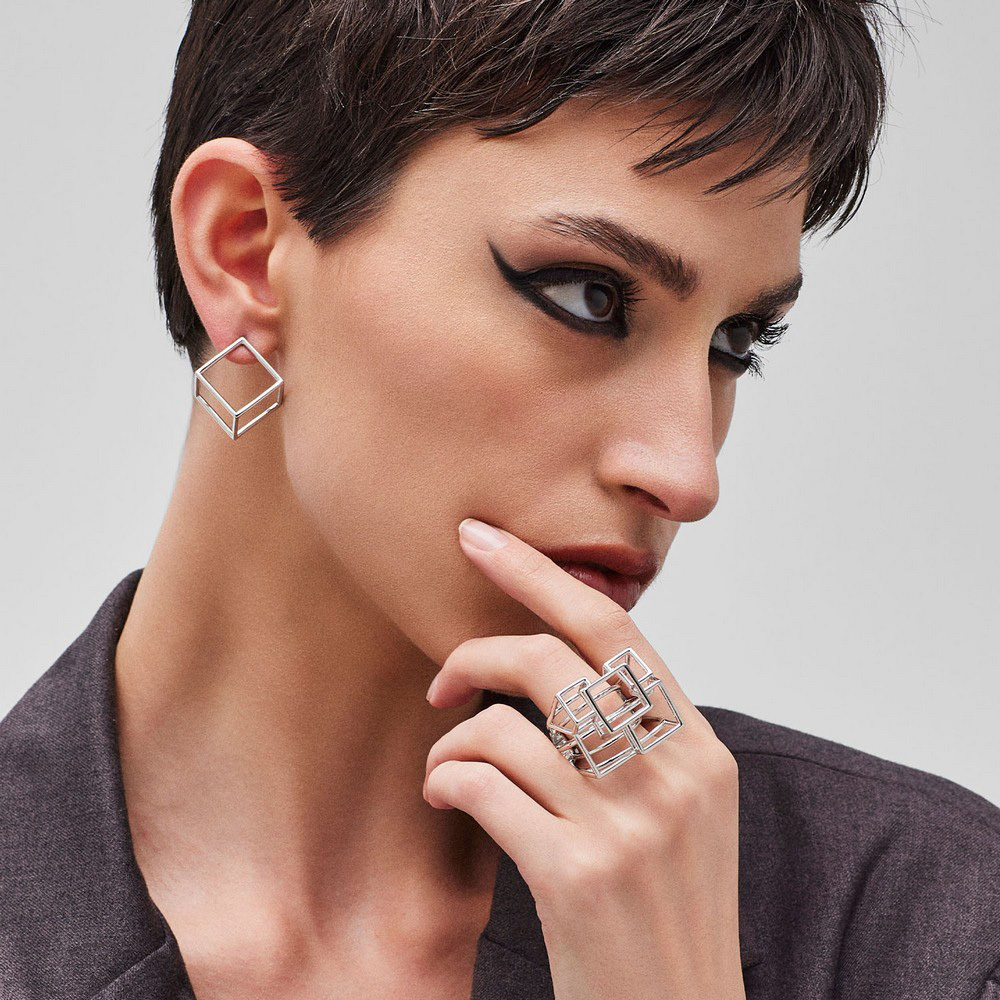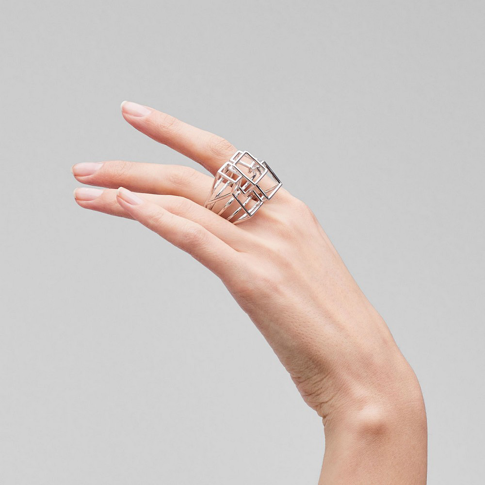 Кольцо Pianegonda геометрической формы из коллекции Kosmos выполнено из серебра 925 пробы. Дизайн кольца состоит из трехмерных элементов в форме сложенных друг на друга кубов. Kosmos от Pianegonda приглашает нас исследовать связь со Вселенной через красоту и искусство, отправляя нас в путешествие к равновесию и гармонии.