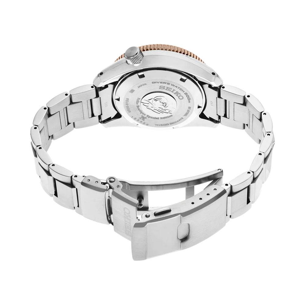 Дайверские часы Seiko Prospex SPB240J1 Boutique Special Edition оснащены японским автоматическим калибром 6R35 на 24 камнях с запасом хода 70 часов на одном заводе. Механизм с возможностью ручного завода и функцией остановки секундной стрелки. Точность хода +25/-15 секунд в сутки. Корпус из нержавеющей стали диаметром 42 мм. Коричневый циферблат с золотистыми акцентами создает уникальный "теплый" облик, нетипичный для дайверских часов. Крупные индексы и стрелки с люминесцентным составом LumiBrite для видимости под водой. Центральные часовая, минутная и секундная стрелки, индикатор даты. Однонаправленный вращающийся безель для контроля времени погружения. Сапфировое стекло с антибликовым покрытием на внутренней поверхности. Завинчивающаяся заводная головка и завинчивающаяся задняя крышка. Стальной браслет с тройной раскладывающейся застежкой с замком. Водостойкость WR 200 (20 атмосфер) по стандарту ISO позволяет погружаться с аквалангом на глубину до 200 метров. Модель — современная интерпретация часов 1968 года в эксклюзивном бутиковом исполнении. Гарантия 2 года.