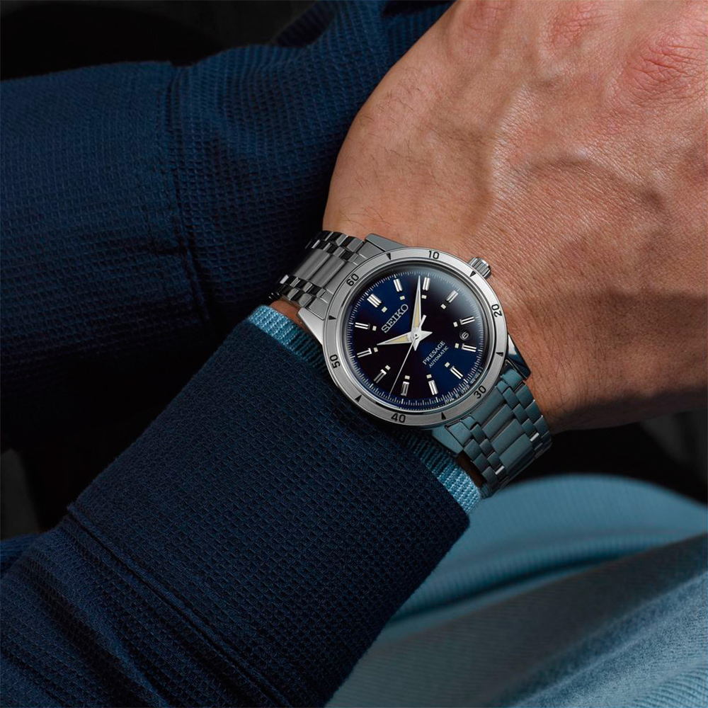 Seiko Presage с синим циферблатом — классика японской часовой элегантности. Более 140 лет бренд совершенствует dress watch, и SRPL07 на стальном браслете — достойный представитель этой линейки.