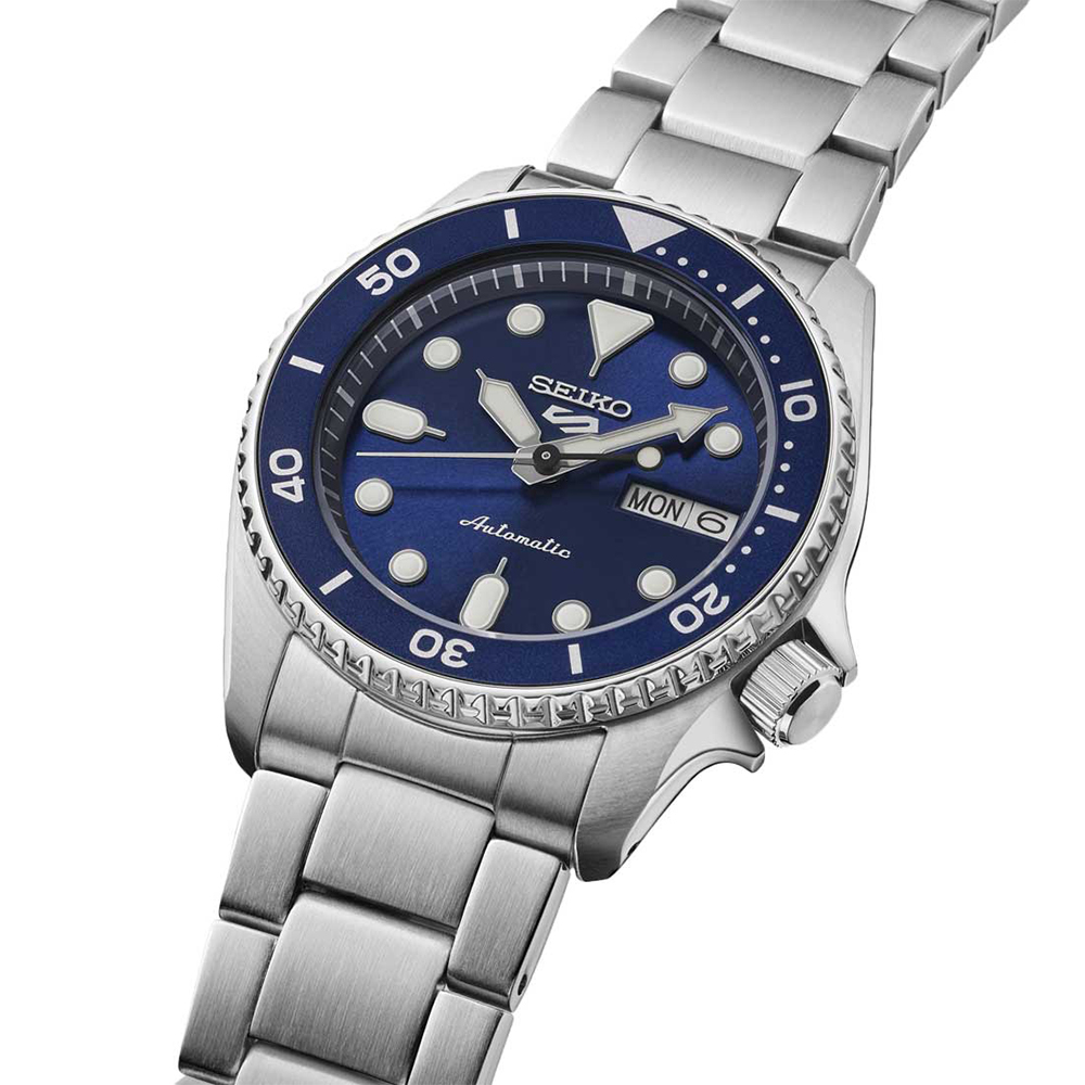 С 1881 года Seiko создаёт часы, вдохновлённые дайверским наследием. Синий SRPL77 из 5 Sports — модель в корпусе 38 мм для мужчин, ценящих компактные пропорции и морскую палитру.