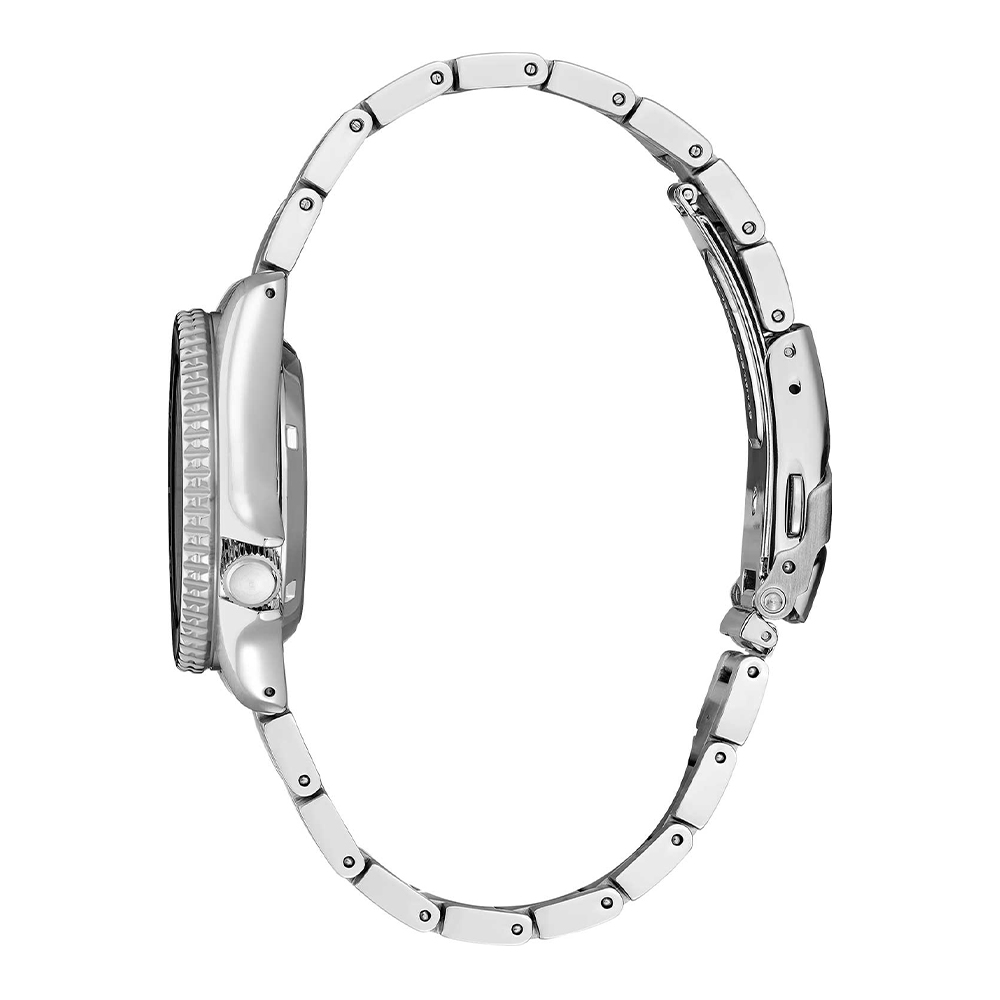 Чёрный циферблат на стальном браслете в корпусе 38 мм — классический и универсальный аксессуар, который безупречно сочетается с деловым костюмом, джинсами и спортивной одеждой. Компактный размер обеспечивает элегантную посадку.