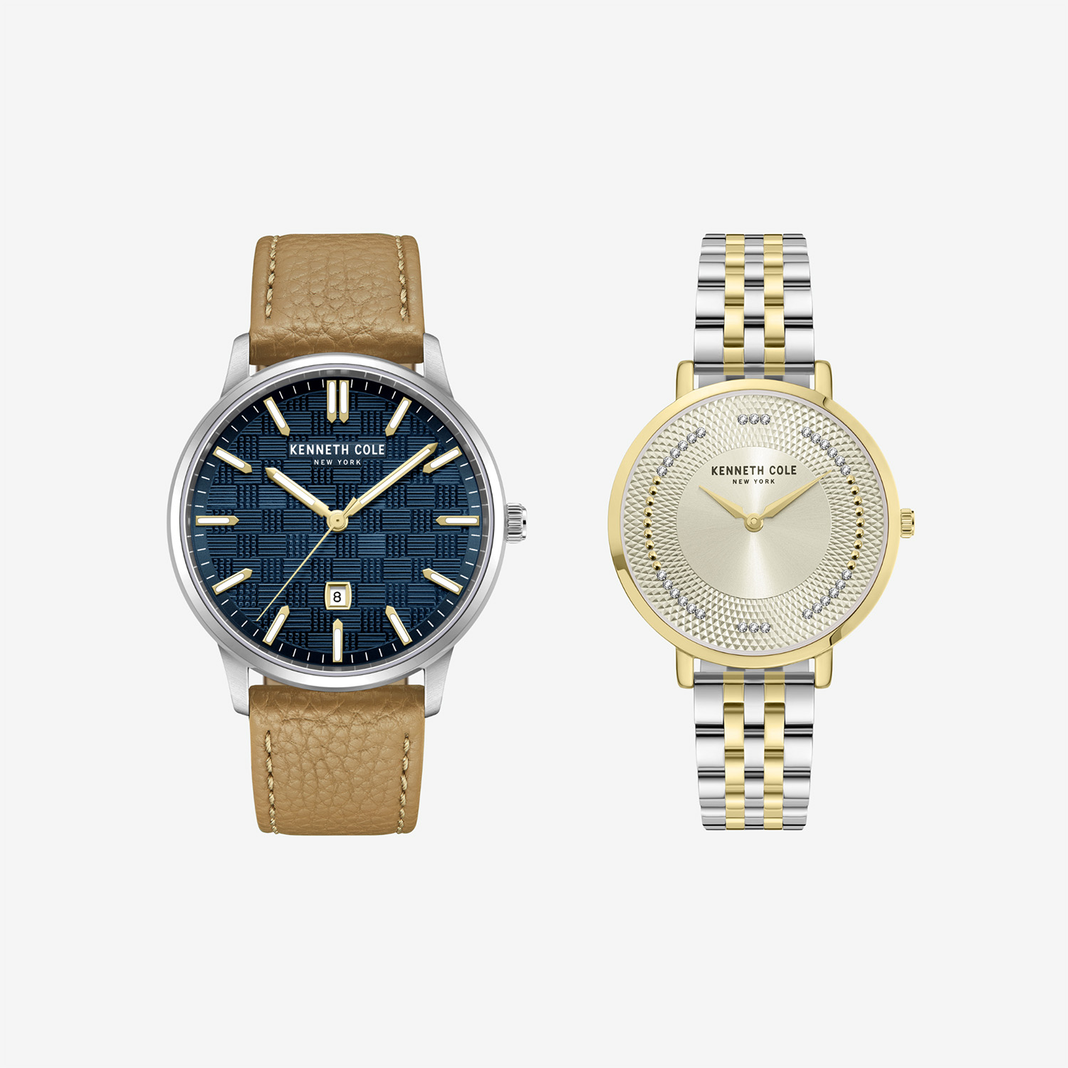 Подарочный комплект состоит из мужских и женских часов Kenneth Cole. Очень выгодное предложение, которое идеально подойдет для парного подарка. Двое часов по цене одних. Минеральное стекло, нержавеющая сталь и кварцевые механизмы. Диаметр корпуса мужских часов 42 мм, женских 34 мм. Гарантия 2 года.