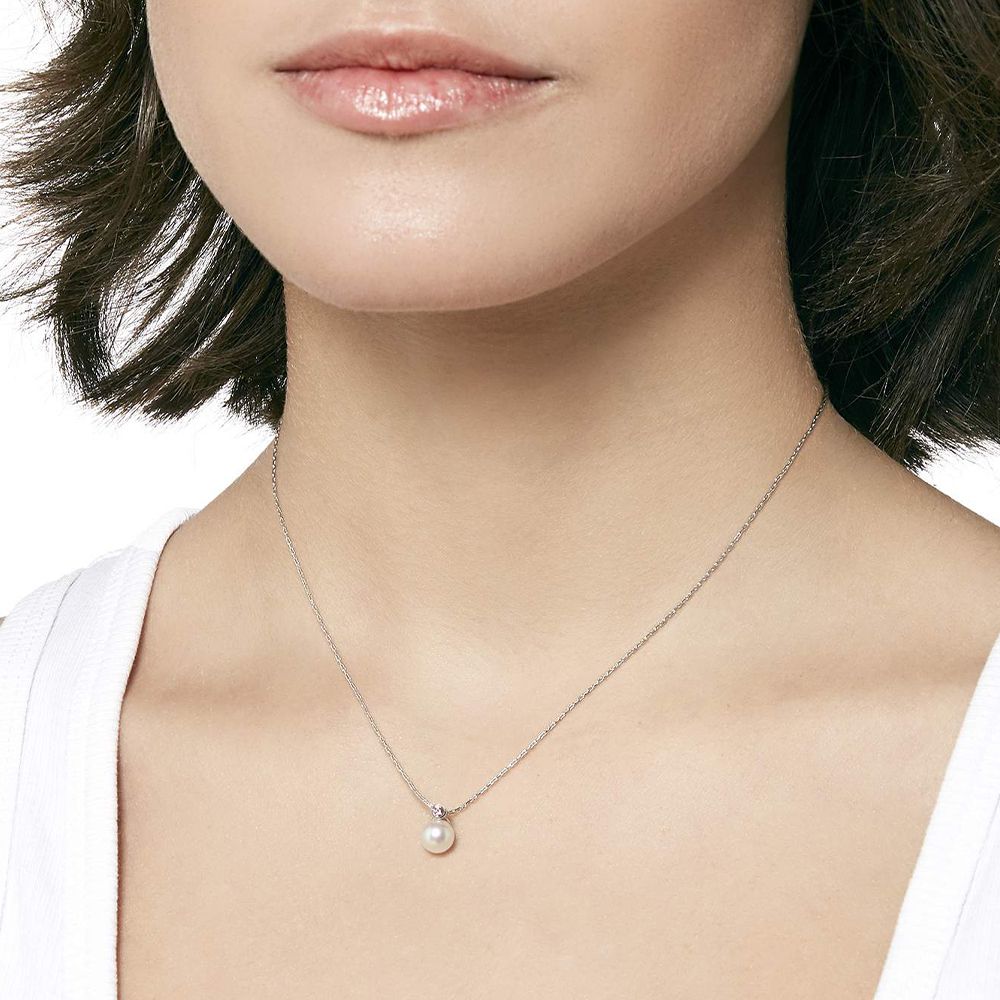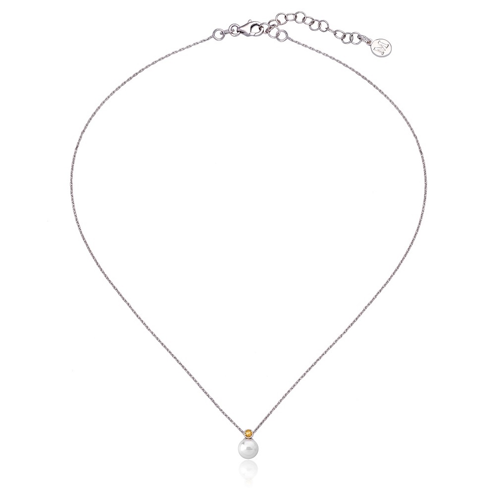 Кулон на цепи длиной 37/42 см, серебро 925 пробы, гальваническое покрытие родием, белый жемчуг диаметром 6 мм, куб. циркония желтый