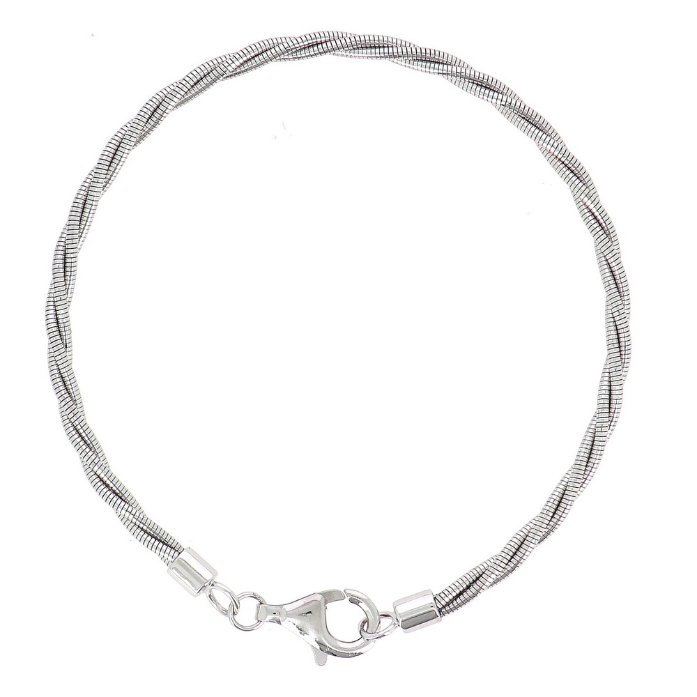 Браслет из коллекции DNA состоит из гибких, переплетенных нитей родированного серебра 925 пробы покрытого родием. Застежка-карабин.