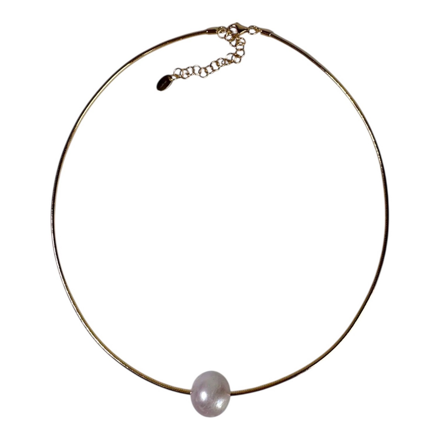 Колье из коллекции DNA выполнено из серебра 925 пробы покрытого позолотой и вставкой из натурального жемчуга. Застежка-карабин с удлинительной цепочкой.