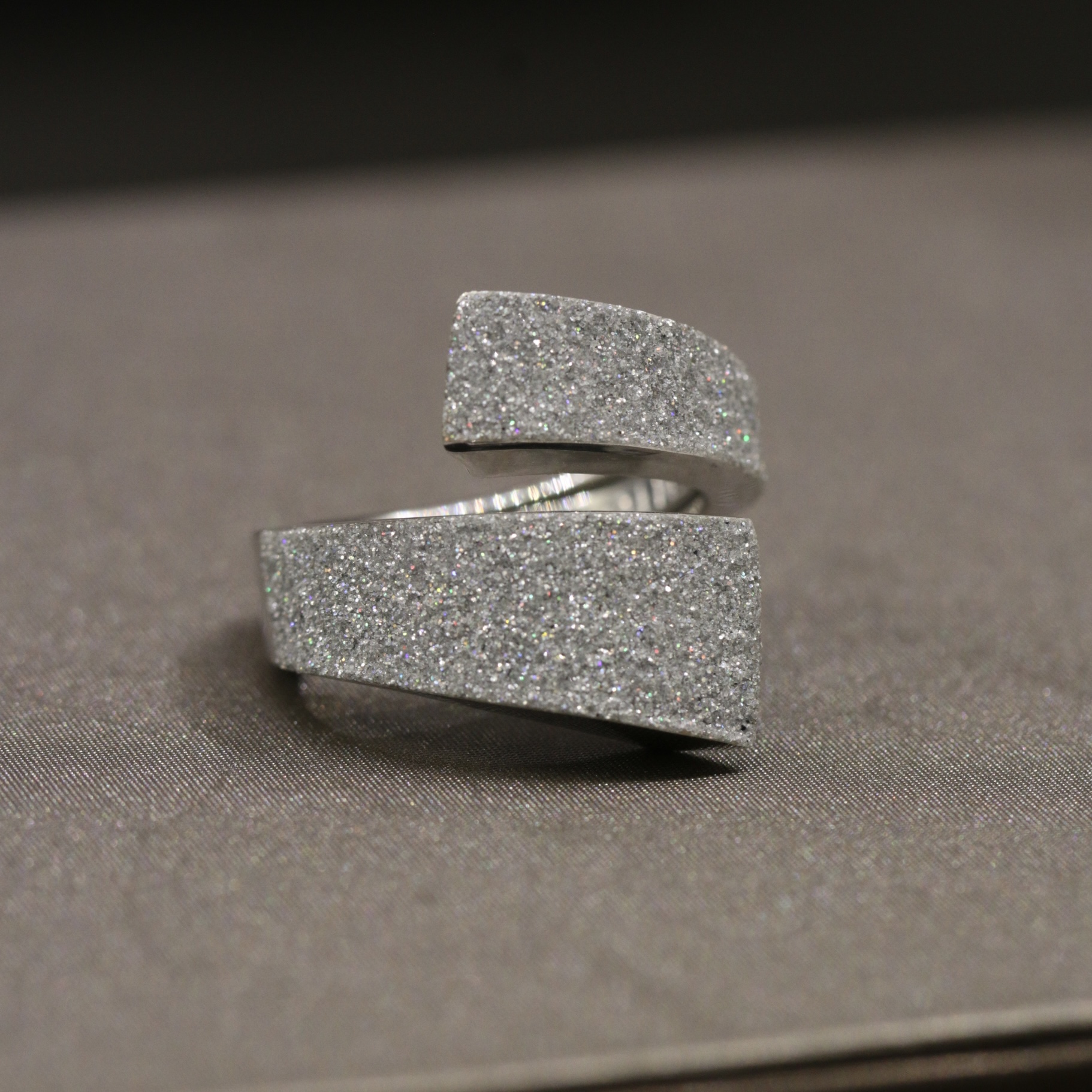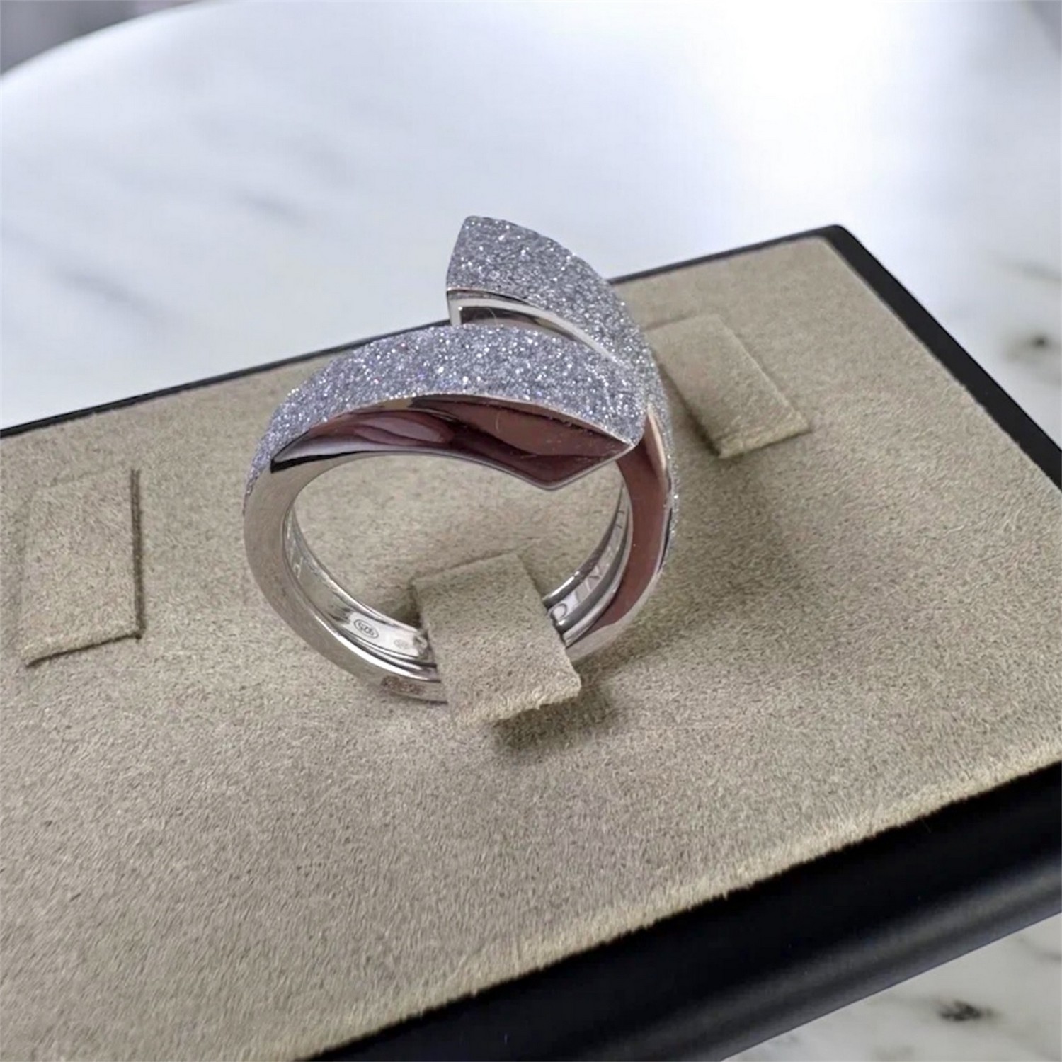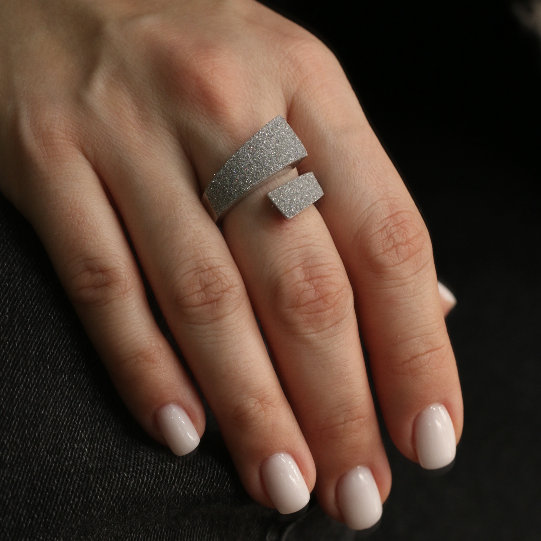 Незамкнутое кольцо Pesavento из коллекции Polvere di Sogni в минималистичном дизайне из серебра покрытого родием и эмалью с микрочастицами, полученными с помощью нанотехнологий из натуральных минеральных материалов.