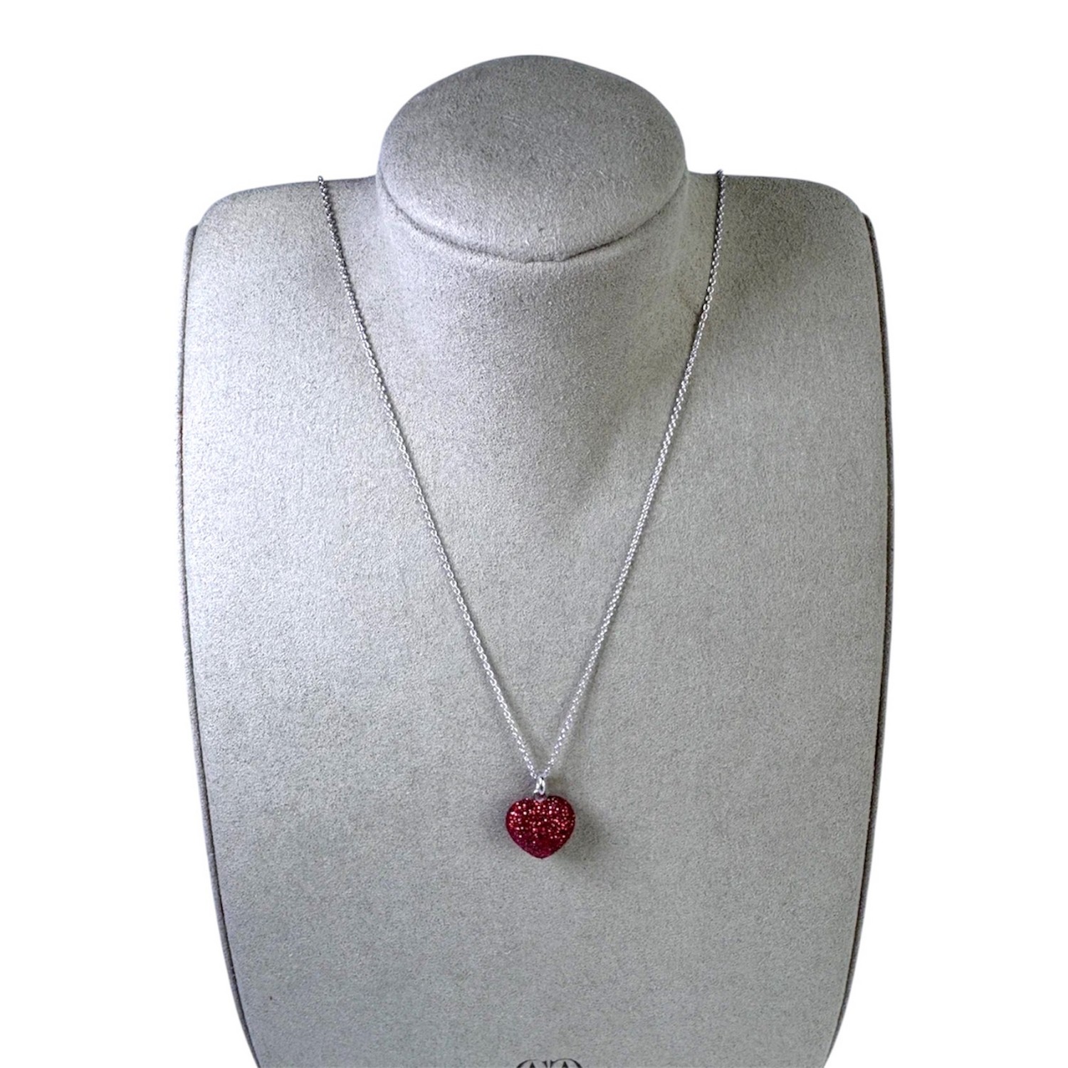 Колье из коллекции Polvere di Sogni выполнено из серебра покрытого родием и подвески в виде красного сердца из эмали с микрочастицами, полученными с помощью нанотехнологий из натуральных минеральных материалов. Застежка - карабин.