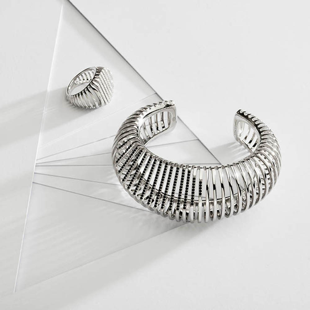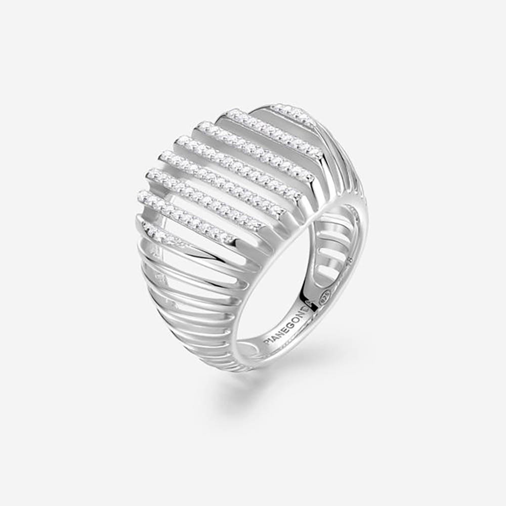 Кольцо PIANEGONDA из коллекции DORIFORA. Металл - серебро 925 пробы, голубой куб. цирконий, 224 шт, гальваническое покрытие родием, средний вес серебра в изделии - 15 гр. Материя, перетекающая от сплошных форм к полым в восхитительной игре теней. Тщательная система обработки в виде безупречной огранки делает украшение воздушным