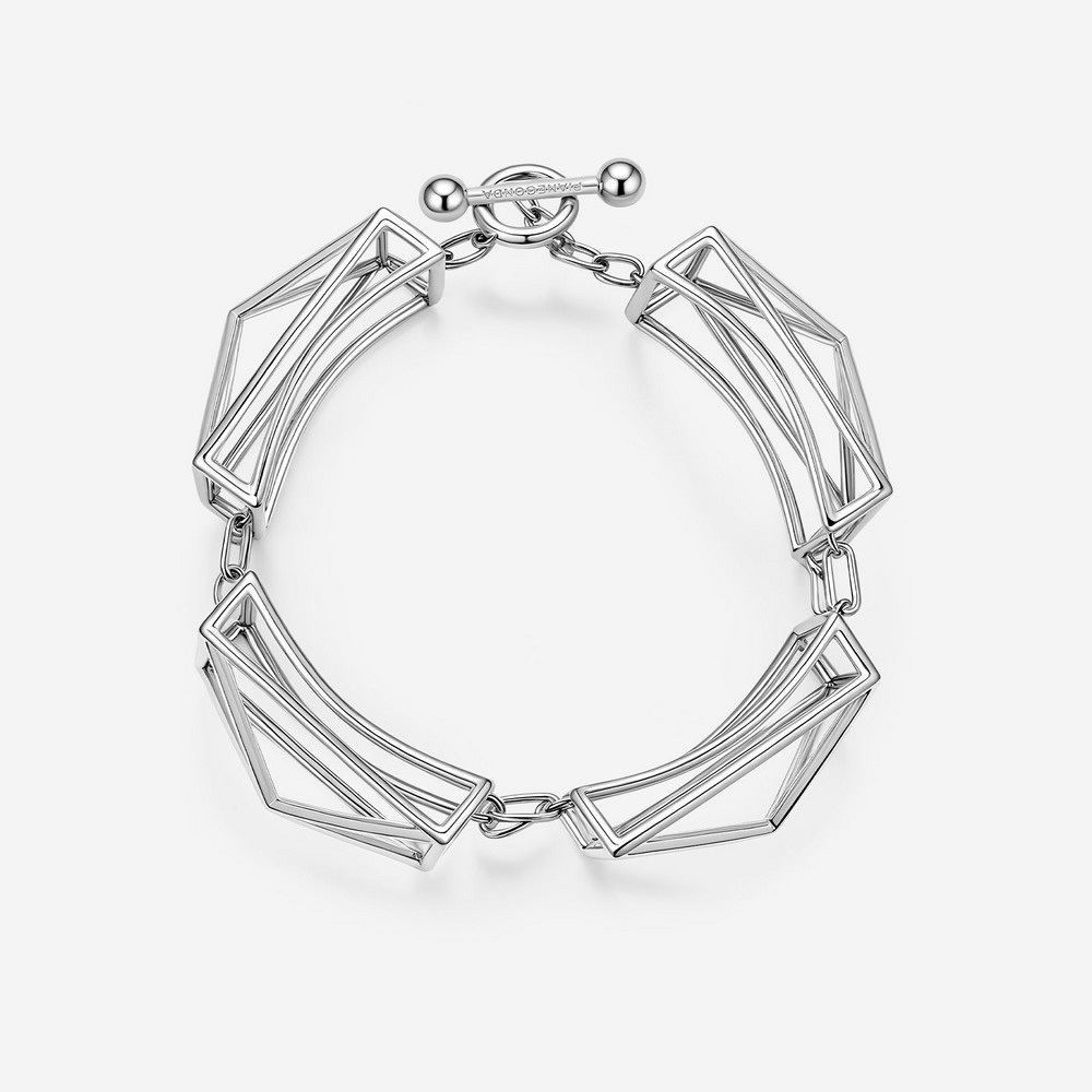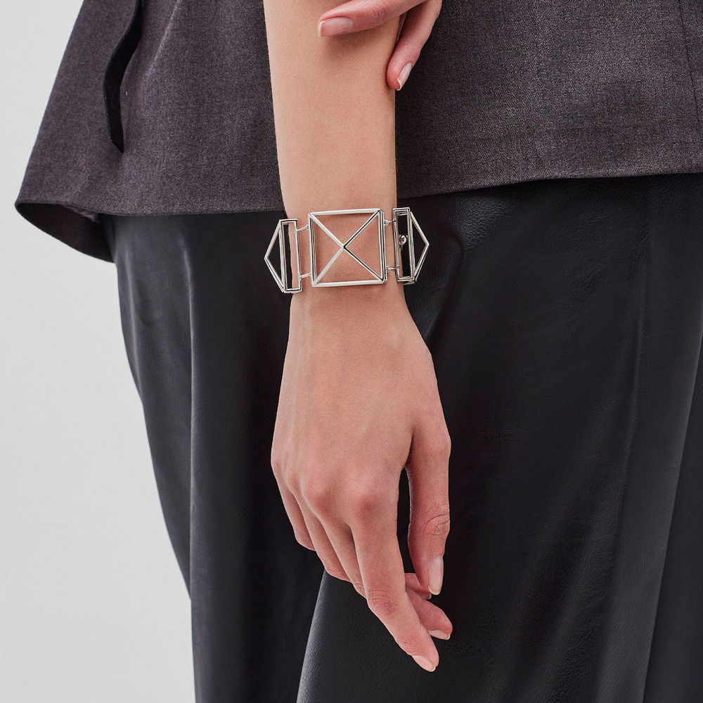 Браслет Pianegonda из коллекции Kosmos создан из серебра 925 пробы, состоит из трехмерных геометрических элементов в форме пирамиды с культовой застежкой Pianegonda. Размер браслета 18,5 см. Геометрия – это язык космоса, древняя наука, описывающая энергетические паттерны, порождающие и объединяющие всё сущее. Kosmos от Pianegonda приглашает нас исследовать связь со Вселенной через красоту и искусство, отправляя нас в путешествие к равновесию и гармонии.