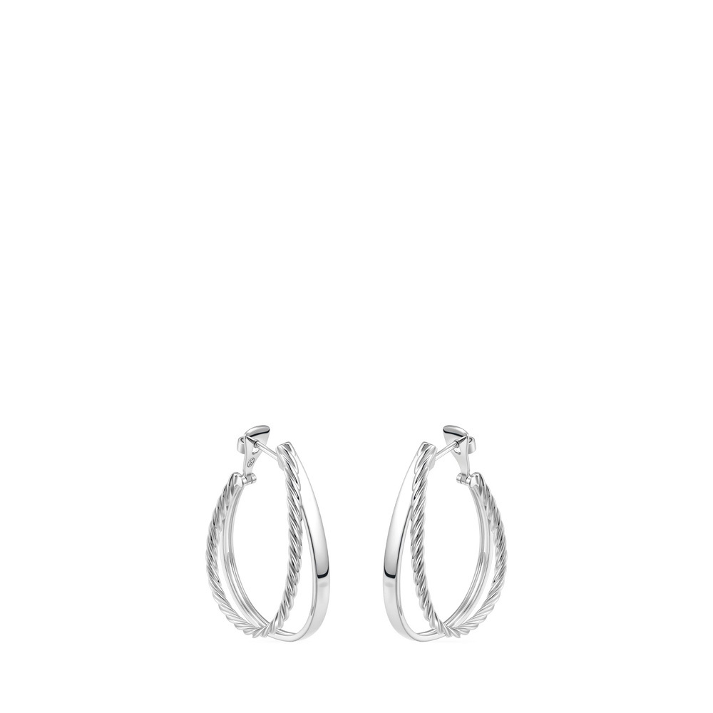 Двойные серьги-кольца Pianegonda из коллекции Tecum выполнены из серебра 925 пробы с блестящей отделкой и текстурой сатинированного каната. Классическая застежка-бабочка. Коллекция Tecum отличается смелым и современным дизайном, который подчеркнет индивидуальность своей обладательницы.