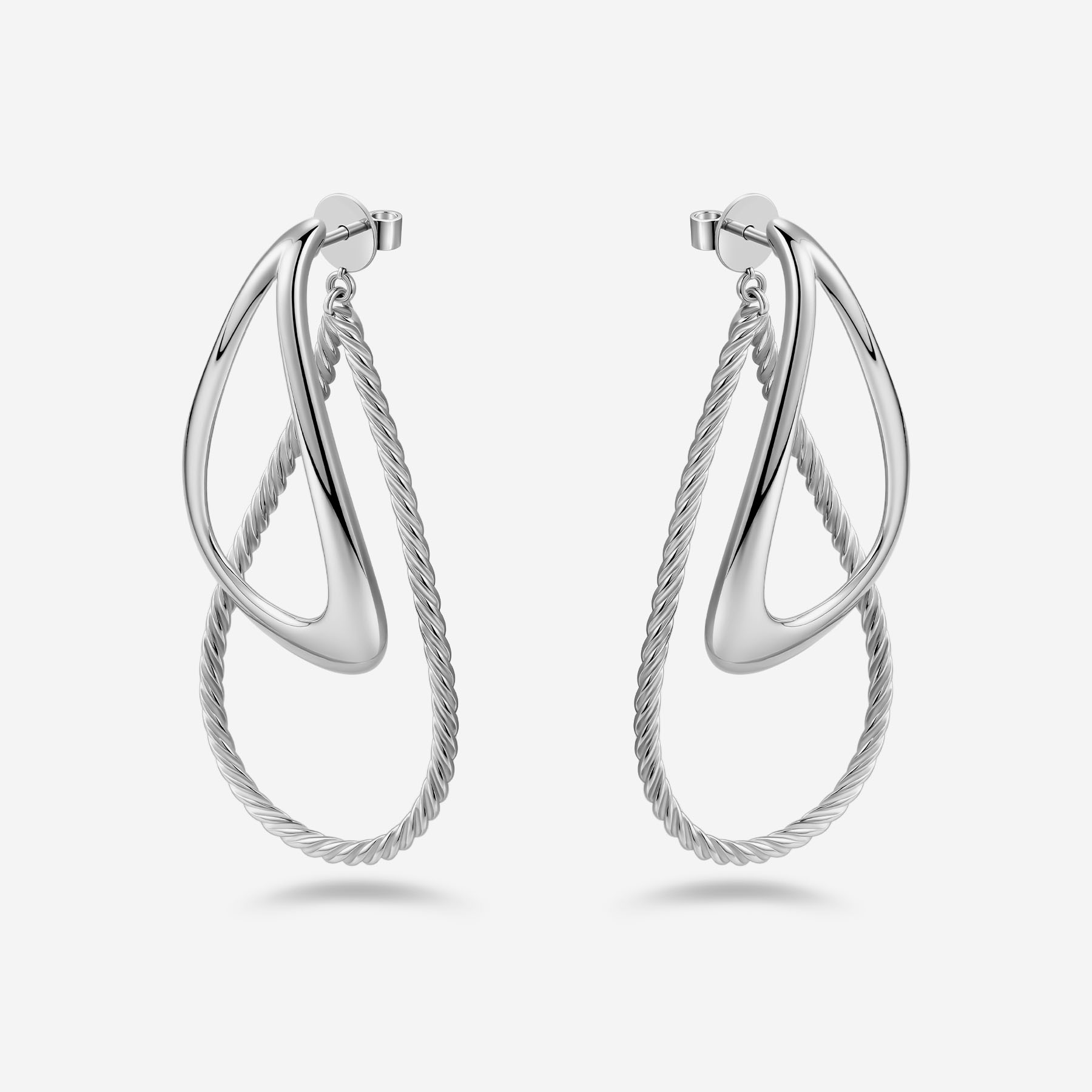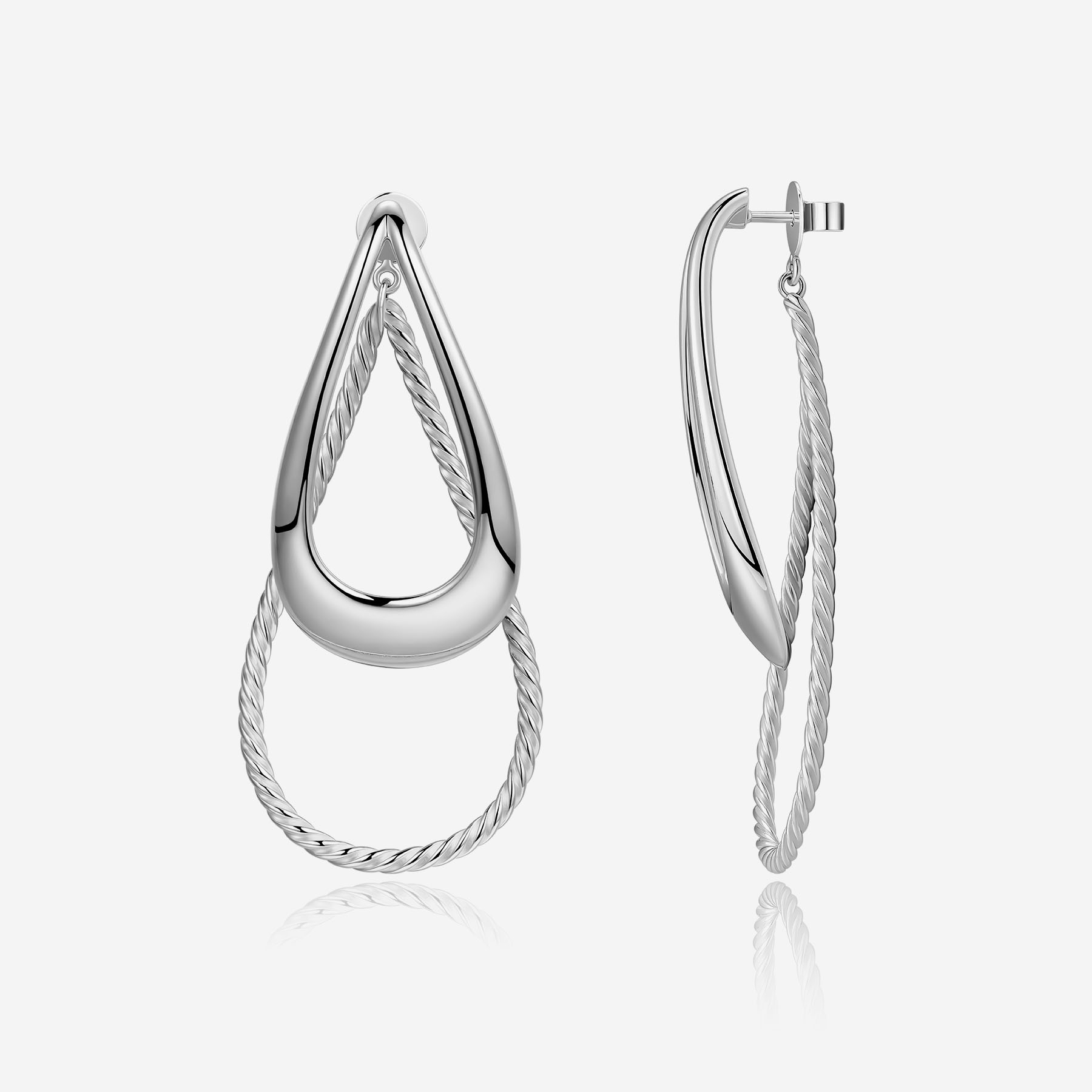 Серьги из коллекции Tecum выполнены из серебра 925-й пробы с полированной лицевой стороной и сатинированной текстурой с эффектом веревки на обратной стороне, с классической застежкой-бабочкой. Размер 60 мм. Украшения из коллекции Tecum подчеркнут индивидуальность своей обладательницы, придав образу элегантность.