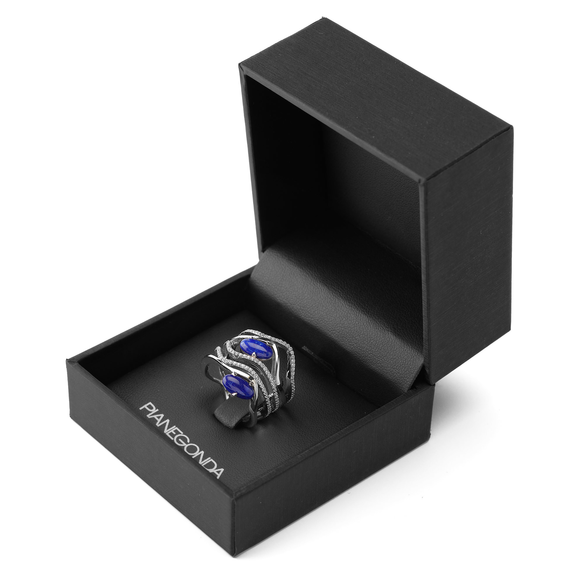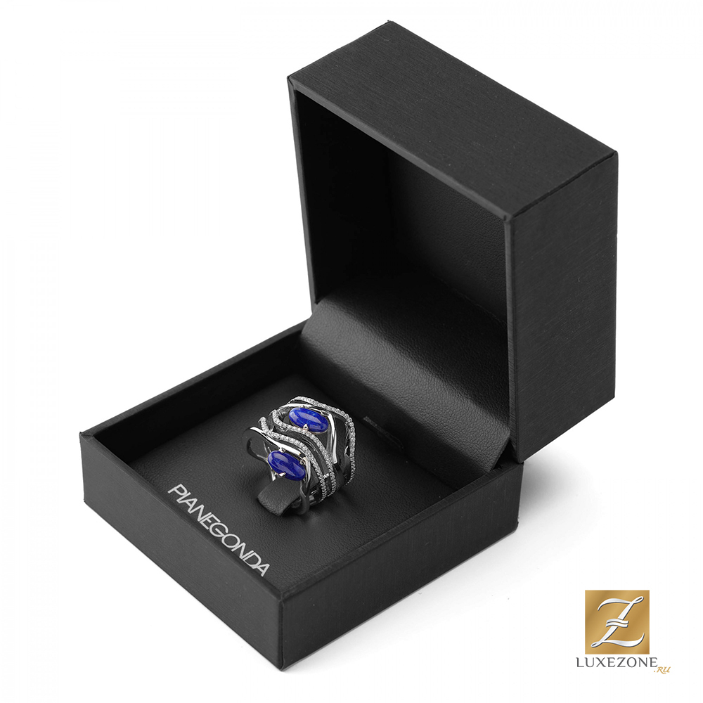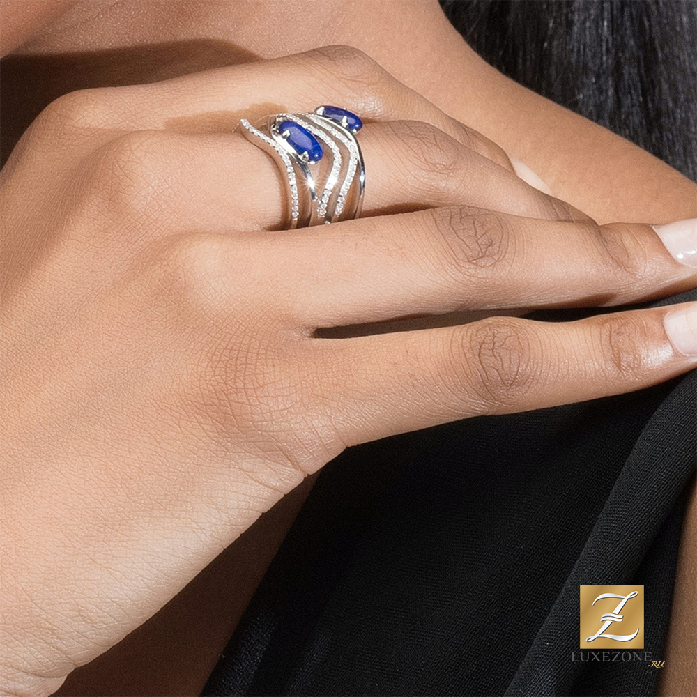Кольцо PIANEGONDA из коллекции ANGUIS. Металл - серебро 925 пробы, лазурит, 2 шт, куб. цирконий, гальваническое покрытие родием, средний вес серебра в изделии - 12 гр. Плавные изгибы напоминают очертания волн. Игра оттенков навевает ассоциации с сокровищами, хранящимися в морских пучинах
