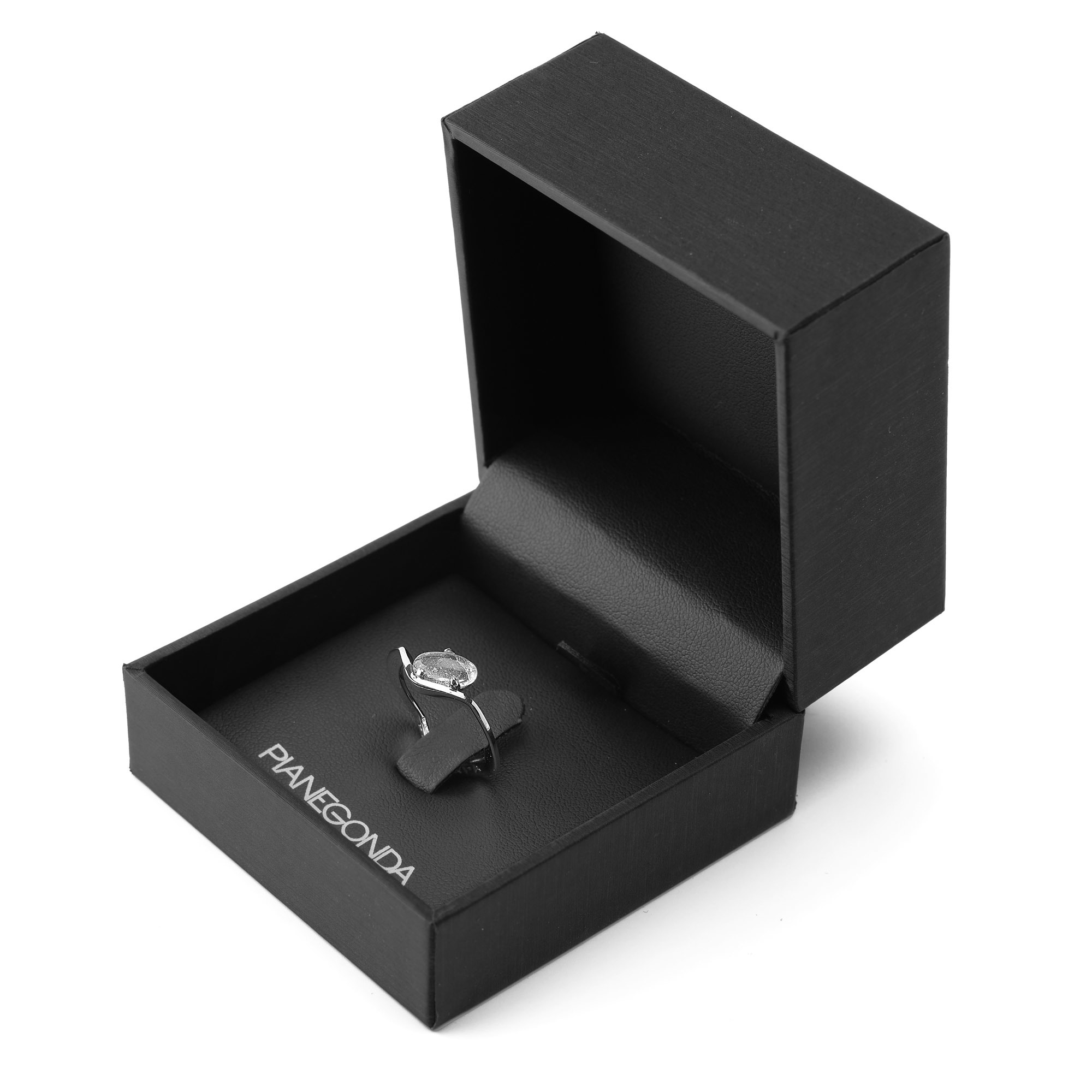 Кольцо PIANEGONDA из коллекции ANGUIS. Металл - серебро 925 пробы, горный хрусталь, 1 шт, гальваническое покрытие родием, средний вес серебра в изделии - 2 гр. Плавные изгибы напоминают очертания волн. Игра оттенков навевает ассоциации с сокровищами, хранящимися в морских пучинах