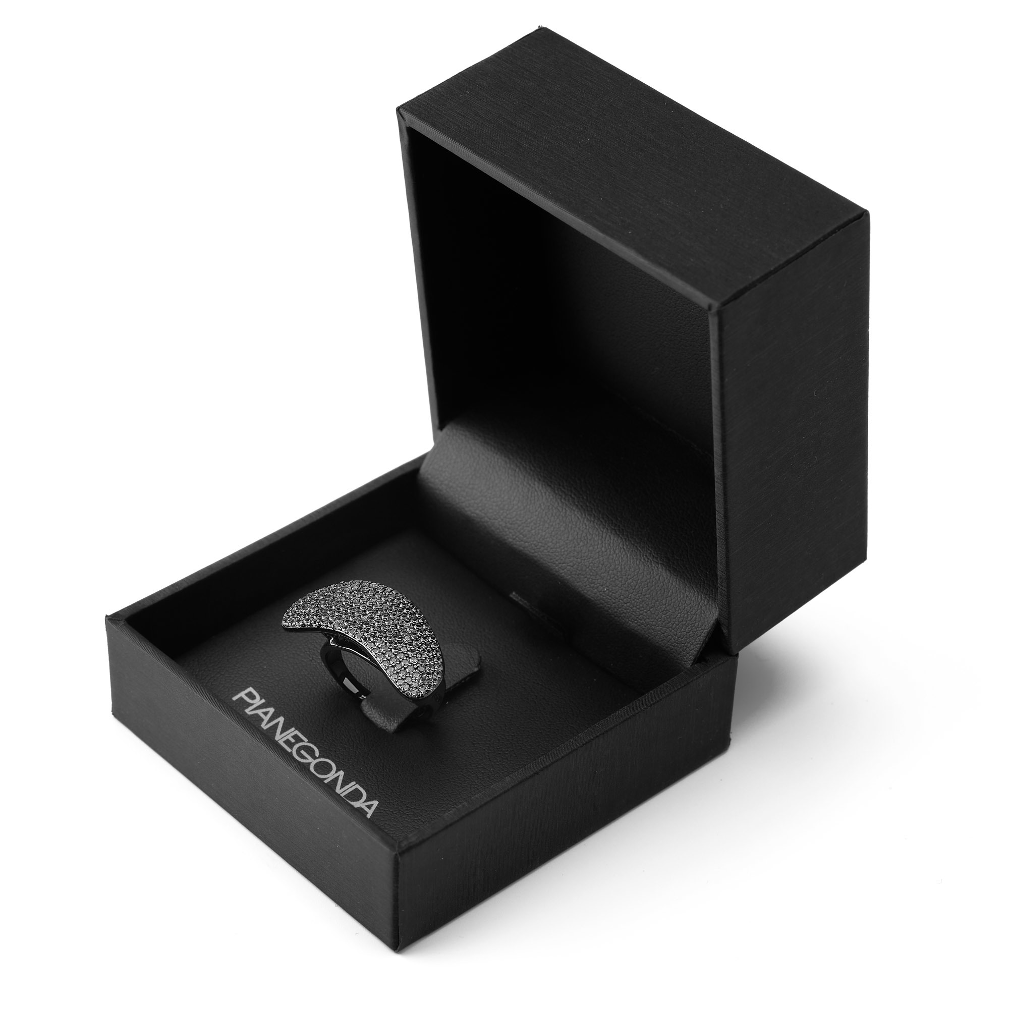Кольцо PIANEGONDA из коллекции CLIPEA. Металл - серебро 925 пробы, куб. цирконий, серый, 183 шт, гальваническое покрытие рутением, средний вес серебра в изделии - 9 гр. Изделия, навевающие ассоциации с благородной чешуей кожи крокодила и камнями, отполированными самим временем. Пластинки с волнистыми очертаниями, гармонично уравновешенные серебряными элементами, воплощают самую суть природы
