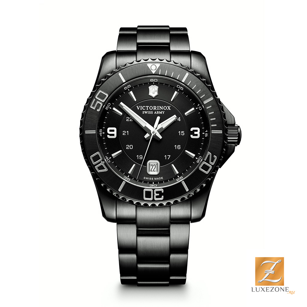 Швейцарские наручные часы Victorinox 241798. Коллекция MAVERICK.Мужские. Корпус и браслет из нержавеющей стали с PVD покрытием, циферблат чёрный. 12-ти и 24-х часовой формат времени. Безель вращается в одном направлении. Диаметр корпуса 43 мм. Сапфировое стекло с тройным антибликовым слоем. Водозащита 100м (10 АТМ). Гарантия 5 лет. Victorinox Swiss Army один из немногих брендов, предоставляющих гарантию 5 лет +, абсолютно все часы Swiss Made. Victorinox Swiss Army – единственная компания, имеющая право носить названия Swiss Army и Swiss Air Force. Приобретая этот товар, Вы покупаете изделие от эксклюзивного дистрибьютора марки на территории РФ.