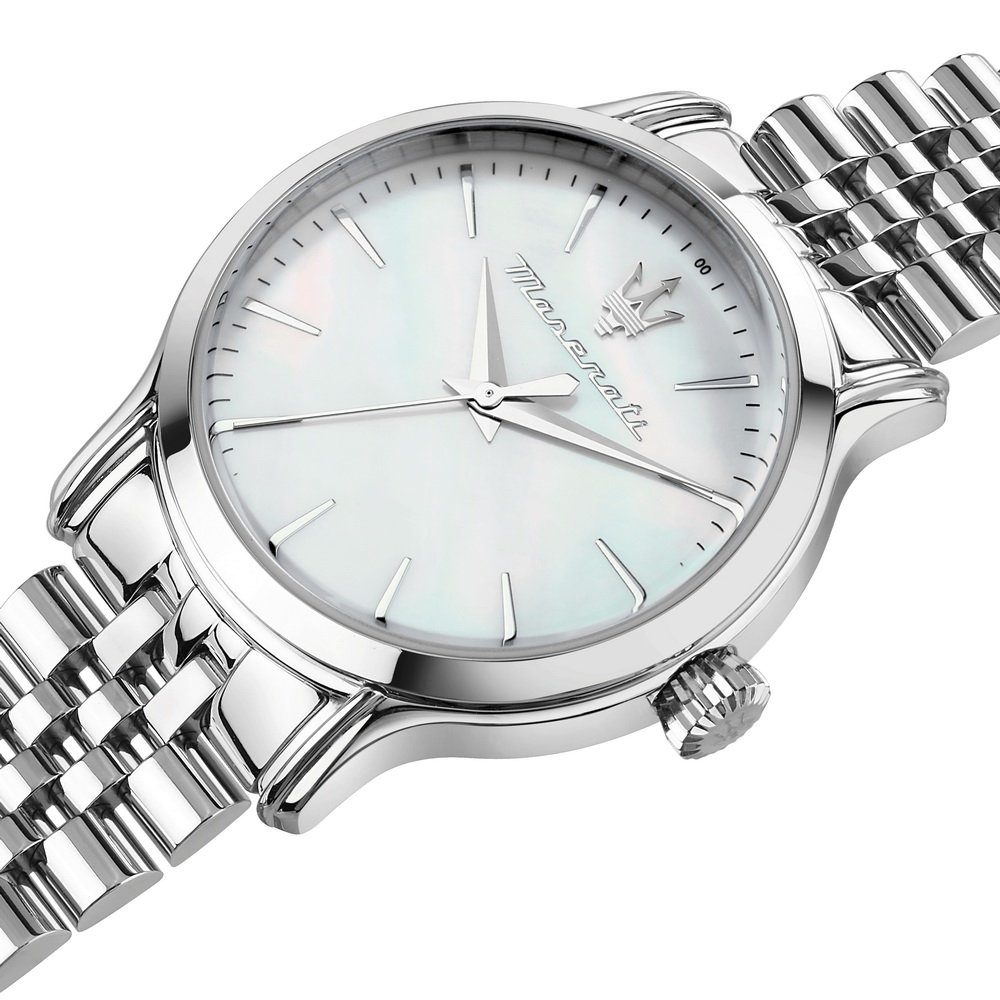 Часы наручные Женские Maserati R8853118521, Материал корпуса: Сталь, Цвет: Стальной, Вставки: нет, Тип механизма: Кварцевый, Стекло: Минеральное, Браслет: Сталь, Стальной, Застёжка: Клипса, Цвет циферблата: Перламутровый, Тип индексов: Риски, Водозащита: 10 ATM