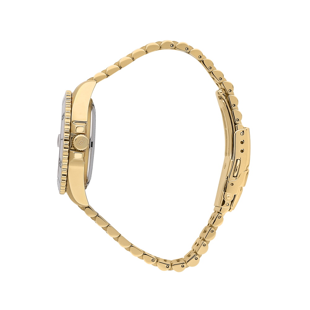 Часы с серебристым циферблатом и золотистым браслетом подходят к вечерним платьям, коктейльным нарядам и элегантным образам. Для женщин, ценящих механические часы с золотым покрытием. Изысканный выбор для светских мероприятий, торжеств и водных видов спорта.