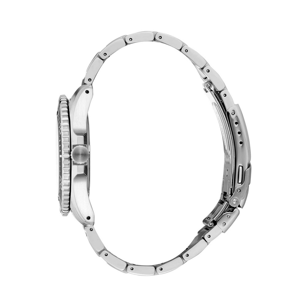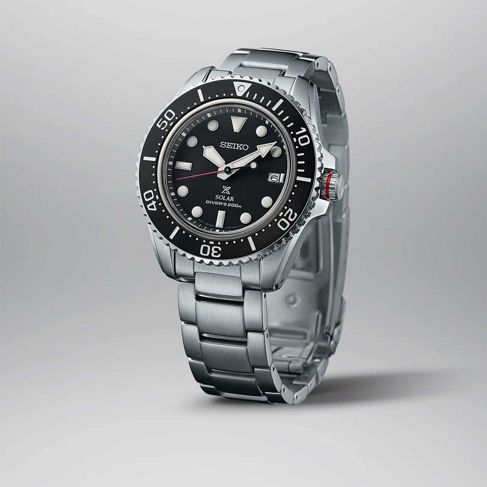 Солнечные часы Prospex для дайверов. Разработанные для тех, кто относится к жизни как к высшему приключению, Seiko Prospex постоянно движутся вперед, решая любые задачи с помощью технологического совершенства и выигрышного дизайна. Обновленные, с увеличенным корпусом, но более изящным и тонким профилем, а также устойчивым к царапинам сапфировым стеклом, эти изящно скроенные и великолепно функциональные часы для дайверов оснащены энергоэффективным солнечным элементом, питающимся от любого источника света, не требующим замены аккумулятора и обеспечивающим 10-месячный запас хода при полной зарядке. Хорошо читаемый черный циферблат оснащен календарем с датой, стрелками и маркерами LumiBrite. В соответствии со стандартами ISO для подводного плавания с аквалангом на глубине до 200 метров эти исключительные часы, изготовленные из нержавеющей стали, оснащены черным однонаправленно вращающимся безелем с отсчетом времени, трехстворчатой застежкой-кнопкой с надежным замком и удлинителем, а также заводной головкой и задней крышкой корпуса. водонепроницаемость 200 м