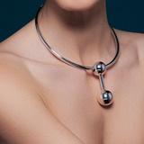Каркасное колье Pianegonda из коллекции Assoluto выполнено из серебра 925 пробы с подвеской в ​​виде двух сфер и гальваническим покрытием родием. Подвеска на колье съёмная.